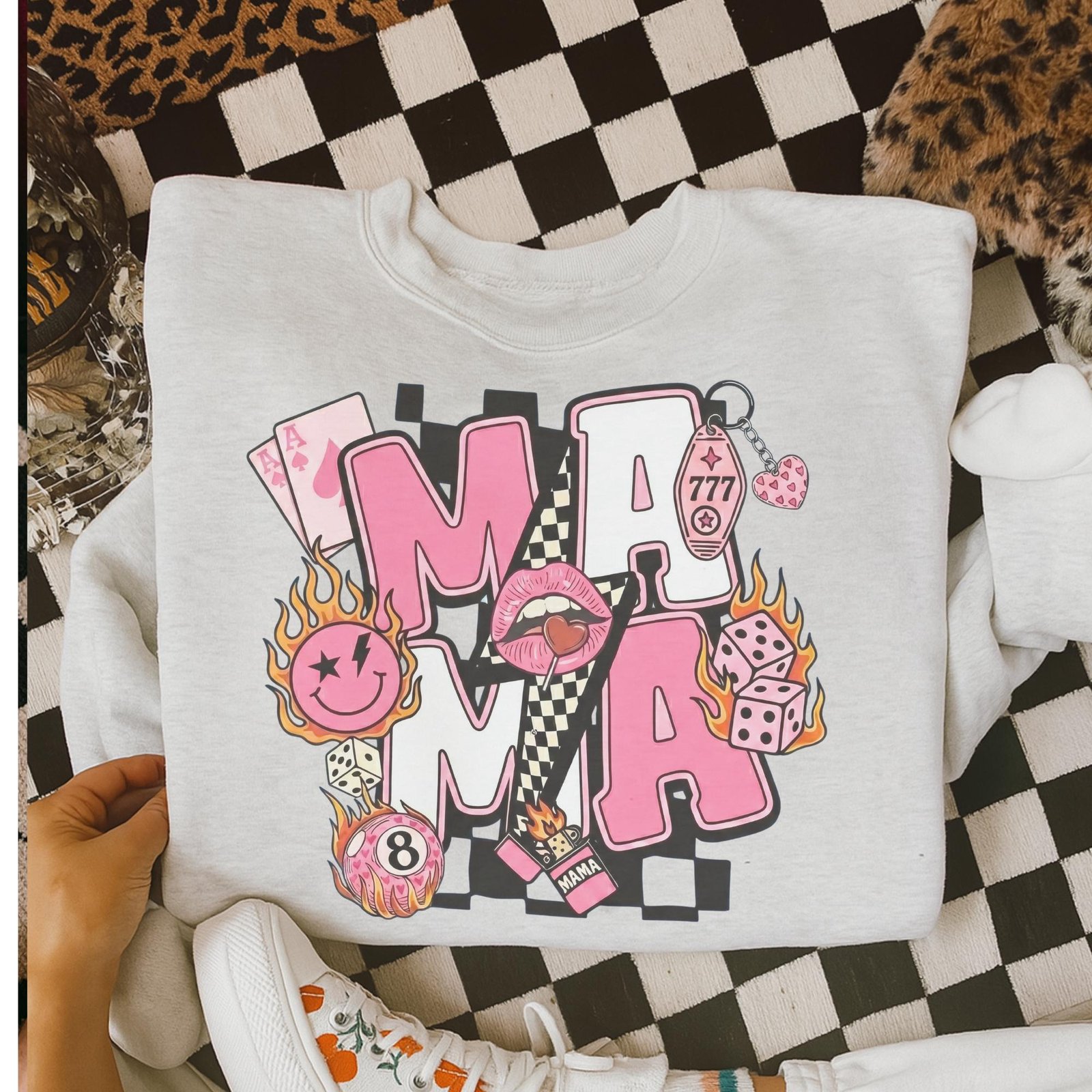 $17.99This product has multiple variants. The options may be chosen on the product pageExplore the ultimate comfort and style with the Mama Smiley Flames Sweatshirt, perfect for every fashion-forward mama!