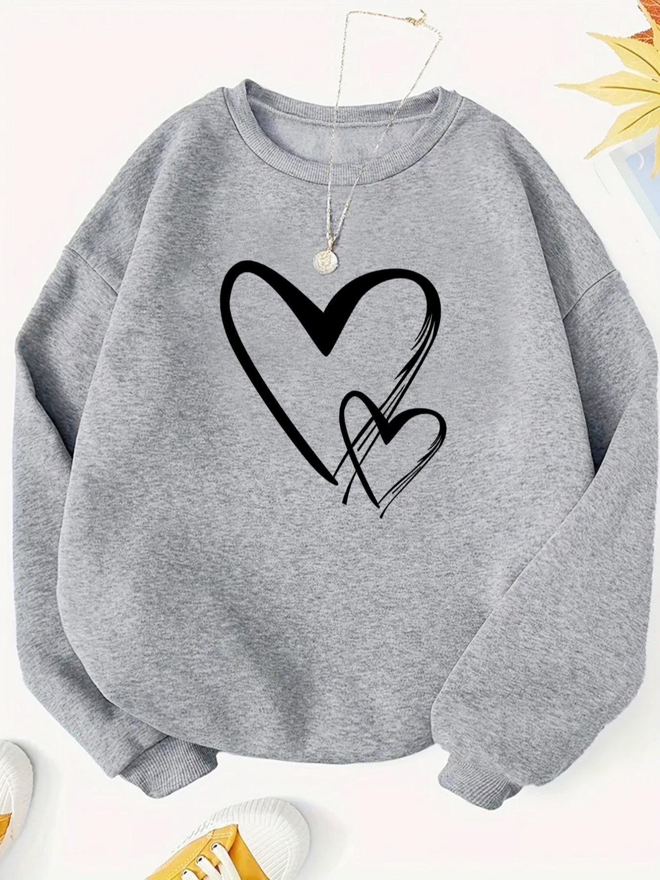 Stylish Valentine Women’s Heart Print Sweatshirt – Cozy Fashion