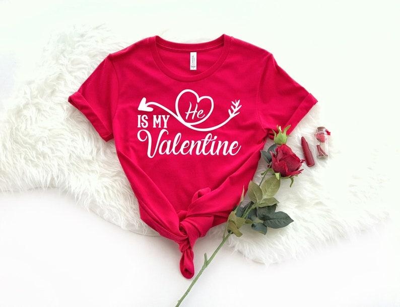 Shop our ‘He Is My Valentine Shirt’ for ultimate comfort and style. Perfect for couples this Valentine’s Day, available in various sizes and colors.