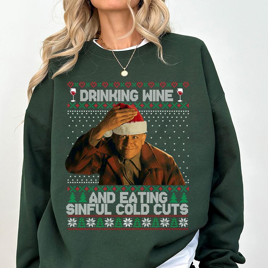 Drinking Wine And Eating Sinful Cold Cuts Sweatshirt For Christmas