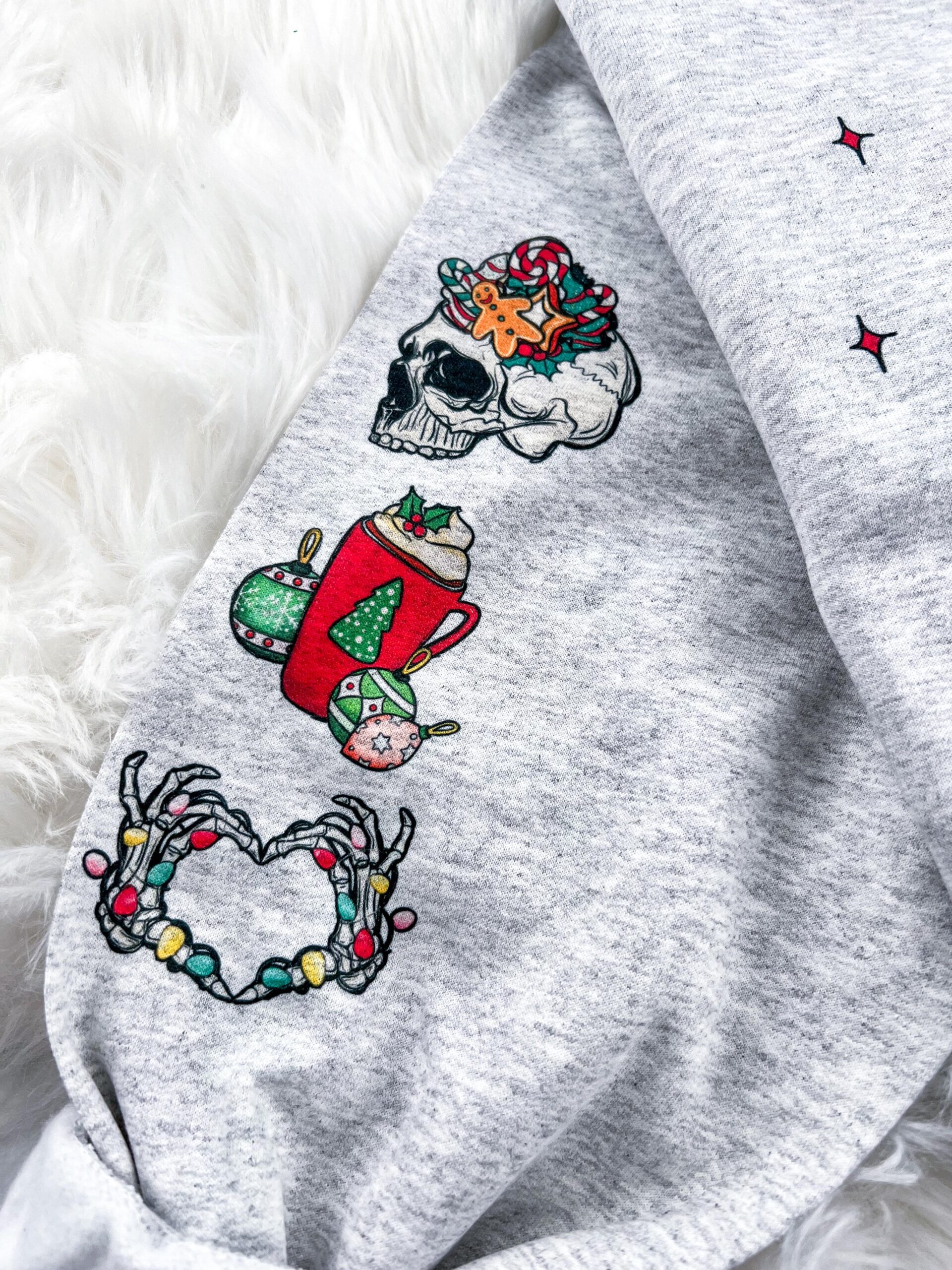 Shop the Sorta Merry Sorta Scary Skeleton Christmas Sweatshirt for ultimate comfort and unique style. Perfect for the festive season!