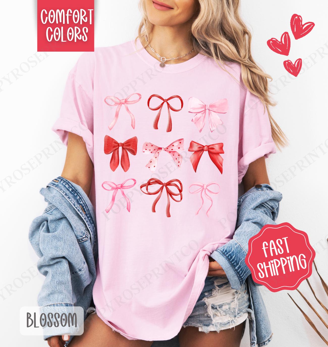 Shop our Valentine Bows Shirt Comfort Colors for stylish comfort! Perfect for all. Order yours today and elevate your wardrobe!
