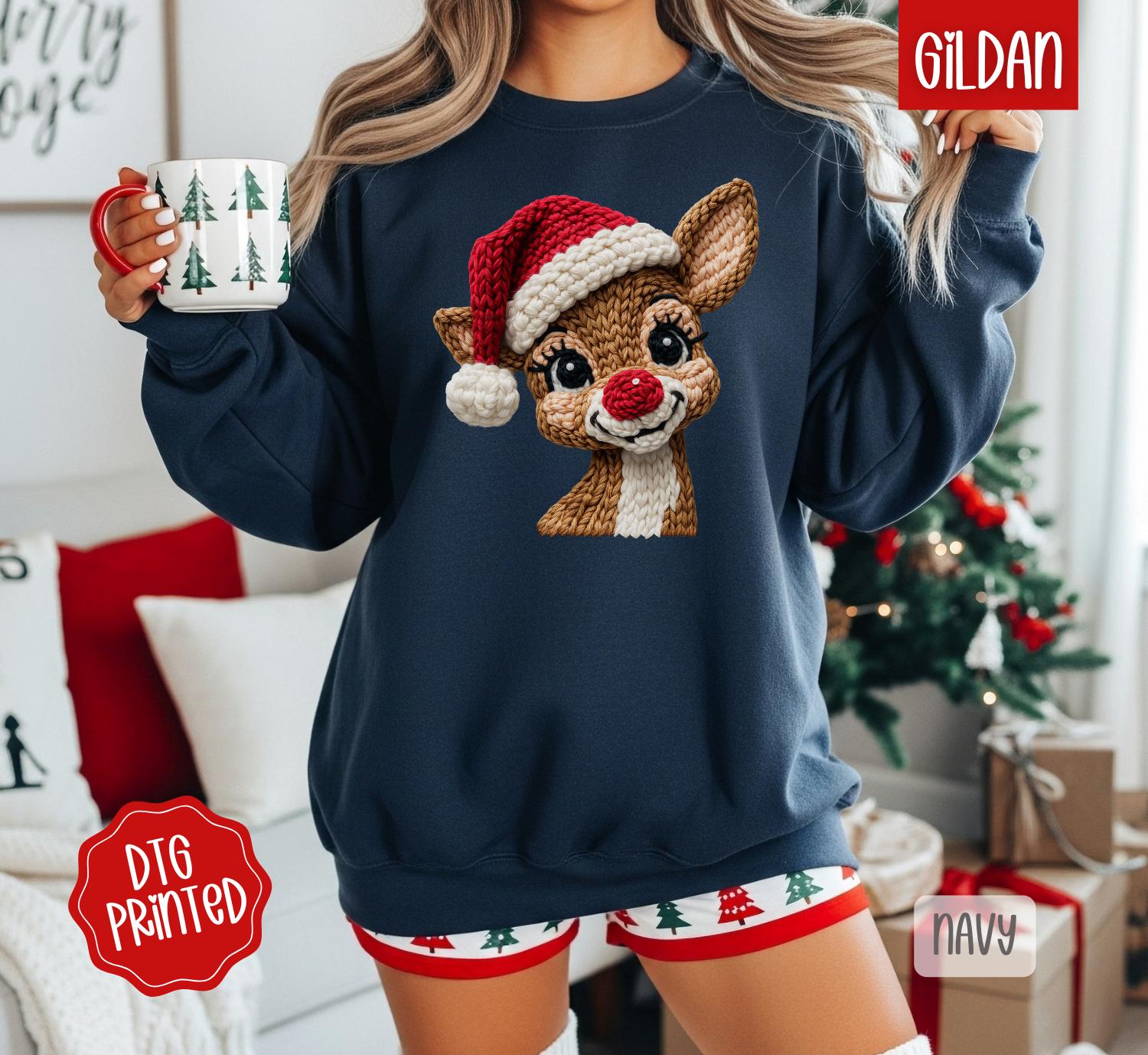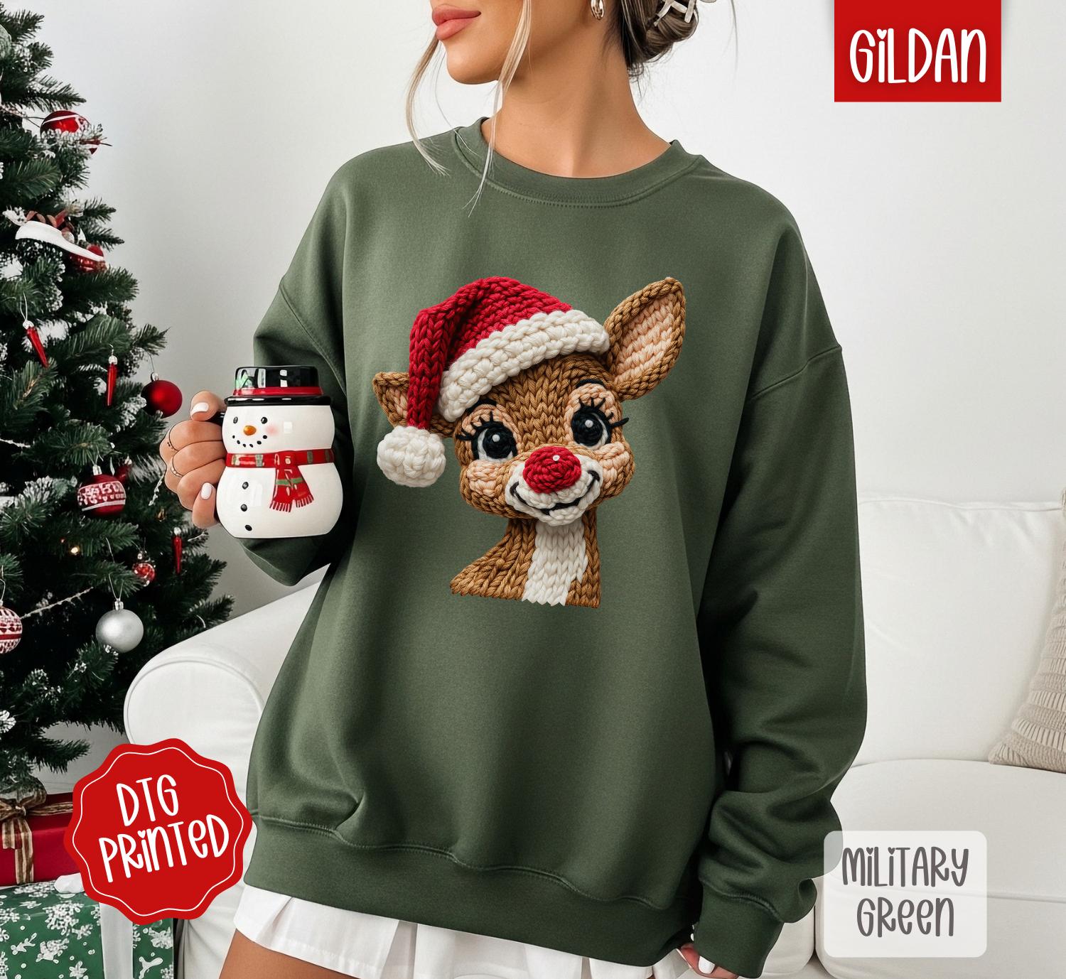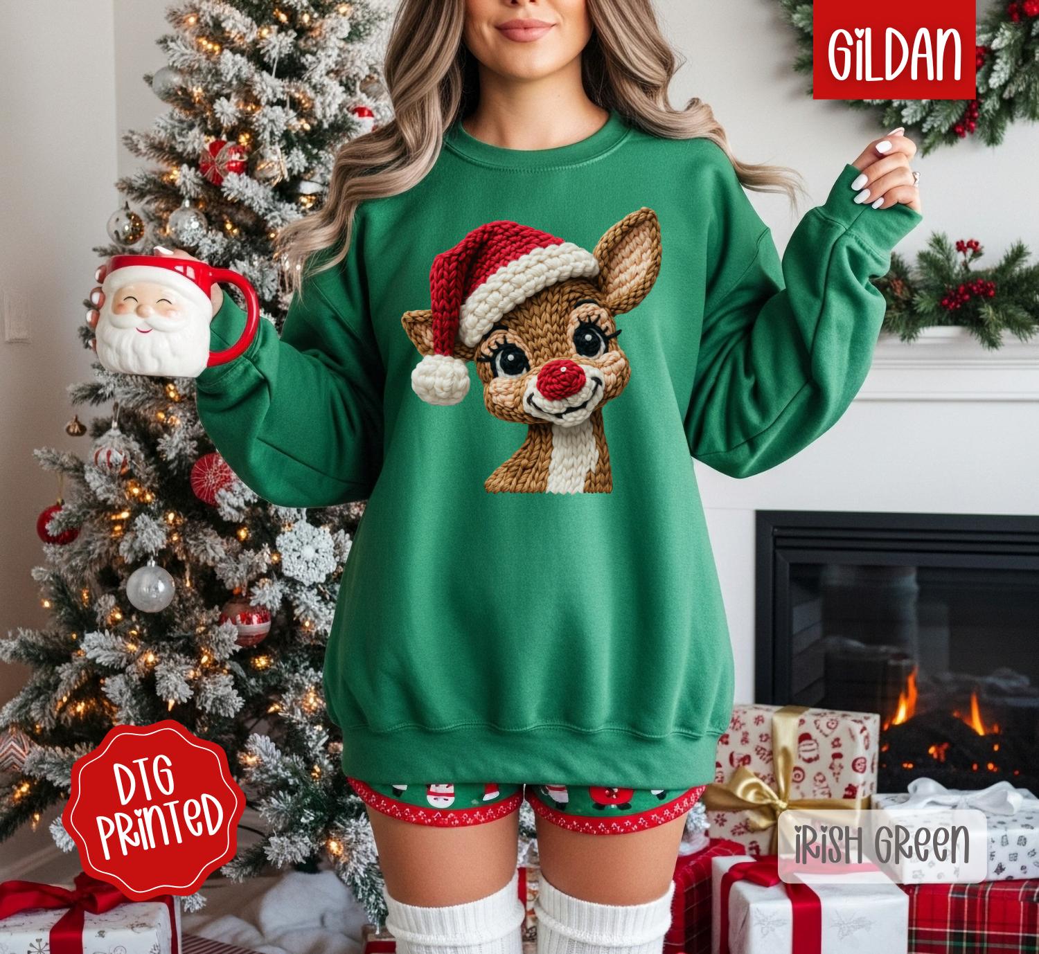 #FauxCrochetRudolphSweatshirt #TrendyWomen #ComfortableWork #from #homeOutfits #ColorVariety #TrendyFashionAvailable #UniversalStyleOptionsForMenAndWomen #SizesForAllBodyTypes