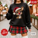 Faux Crochet Rudolph Sweatshirt, Trendy Women’s Christmas Crewneck, Comfortable Work-from-home Outfits, Color Variety, Trendy Fashion Available, Universal Style Options For Men And Women, Sizes For All Body Types