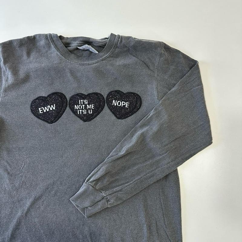 Thank you for choosing our products! We are excited for you to enjoy your new Heart Embroidered Sweatshirt. Your satisfaction is our priority!