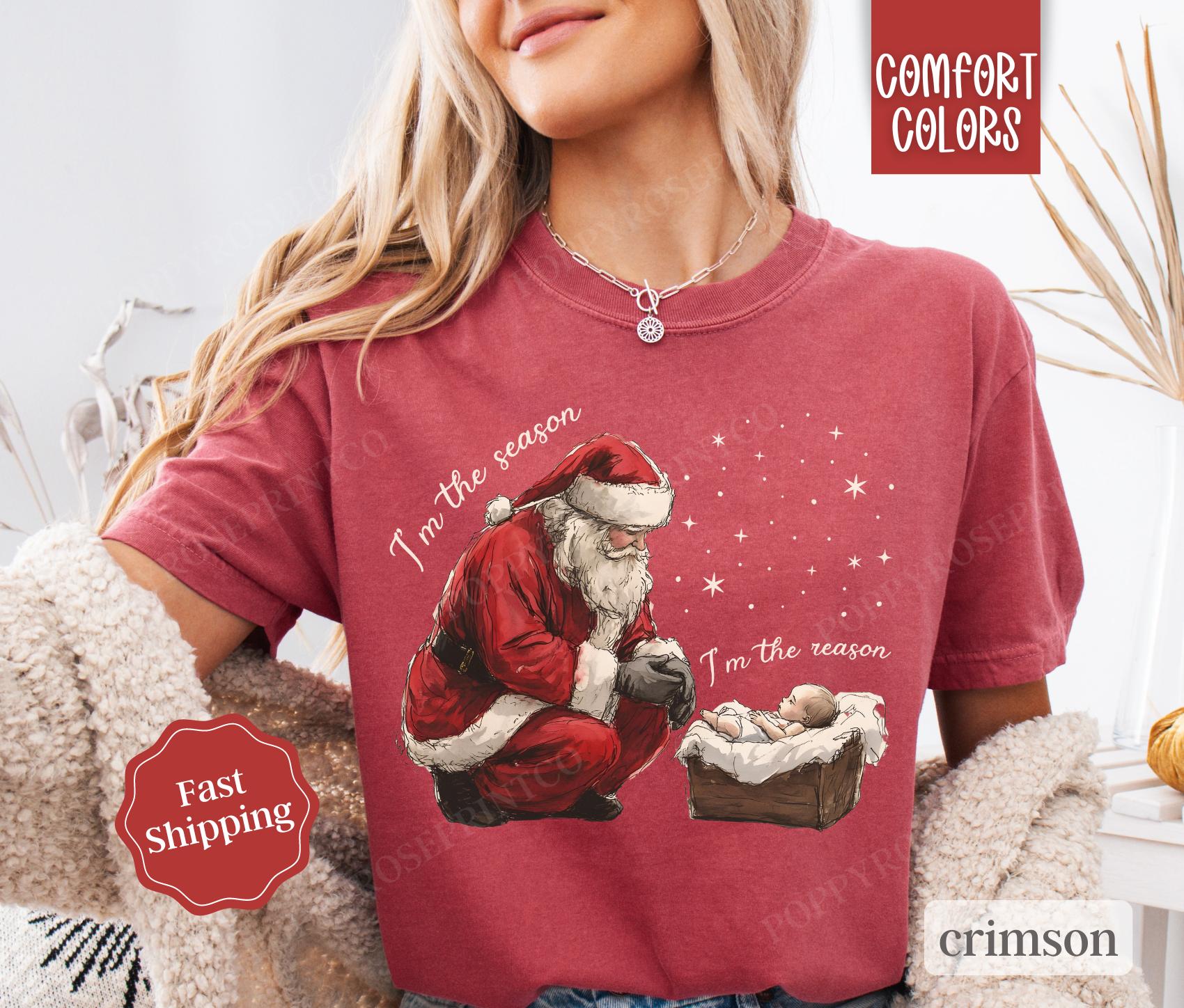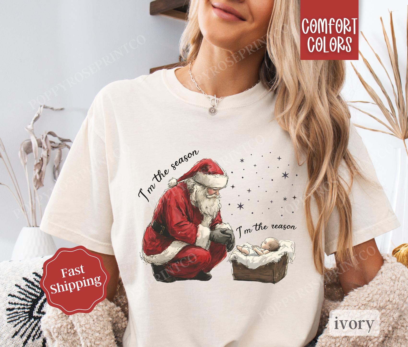 Jesus Christmas Shirt Comfort Colors, Religious Xmas Tshirt, Women’s Holiday Tee, Comfortable Work-from-home Outfits, Vibrant Colors, Trendy Fashion Available, Size Availability, All-inclusive Fashion Collections For Men And Women