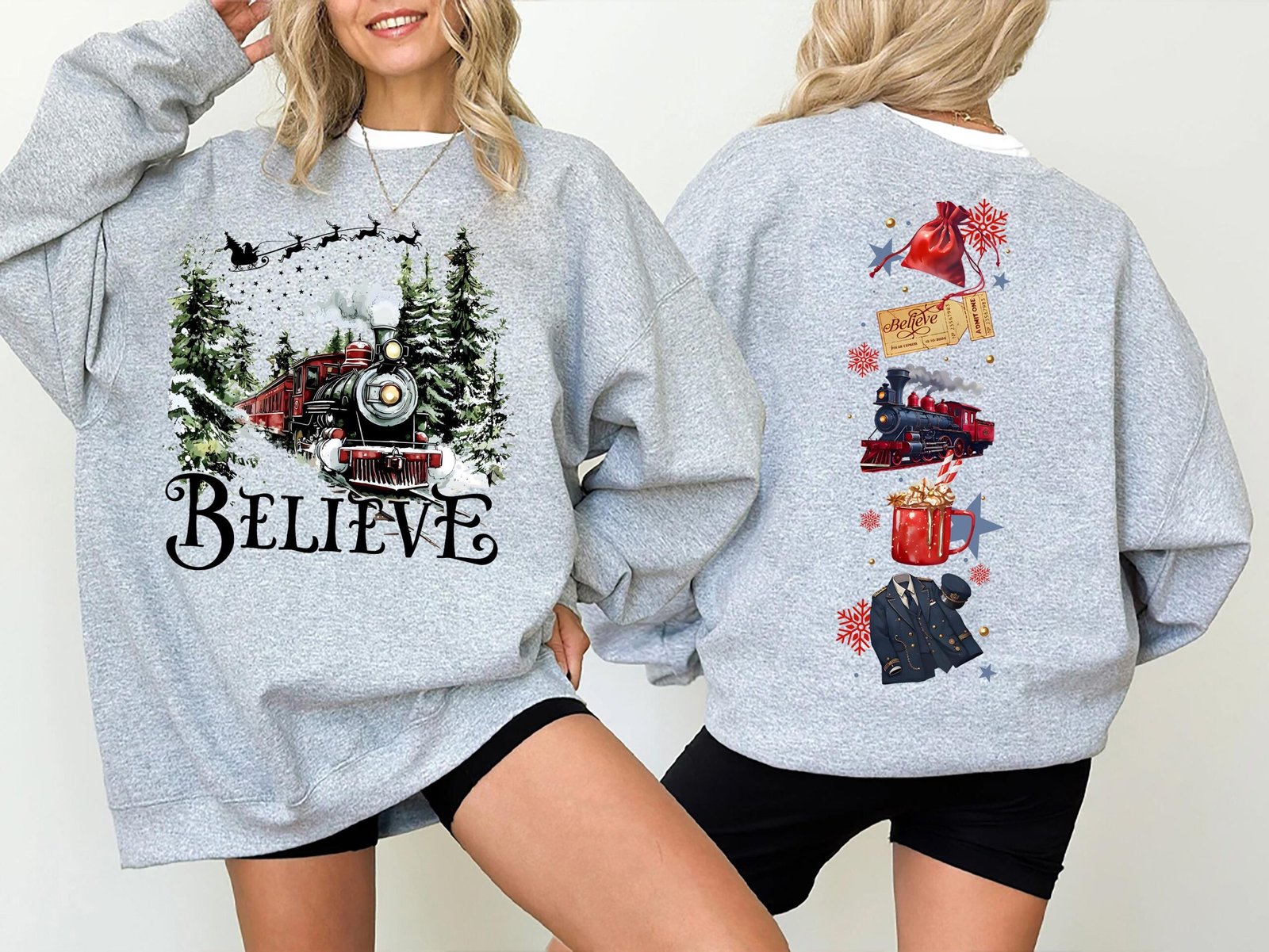 Polar Express 2 Sides Sweatshirt, Polar Express Believe Movie Sweatshirt, All-gender Fashion Trends For Men And Women, All Sizes Available, Statement Fashion Items, Colorful Options, Variety Of Fashion Designs