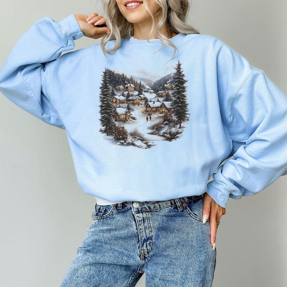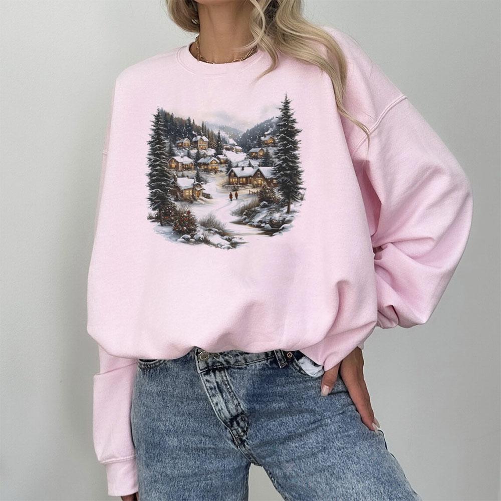 84 reviews for Retro Christmas Winter Village Sweatshirt – Nineties 90s Mountain Pine Trees Decorated Cabins Pullover Cotton