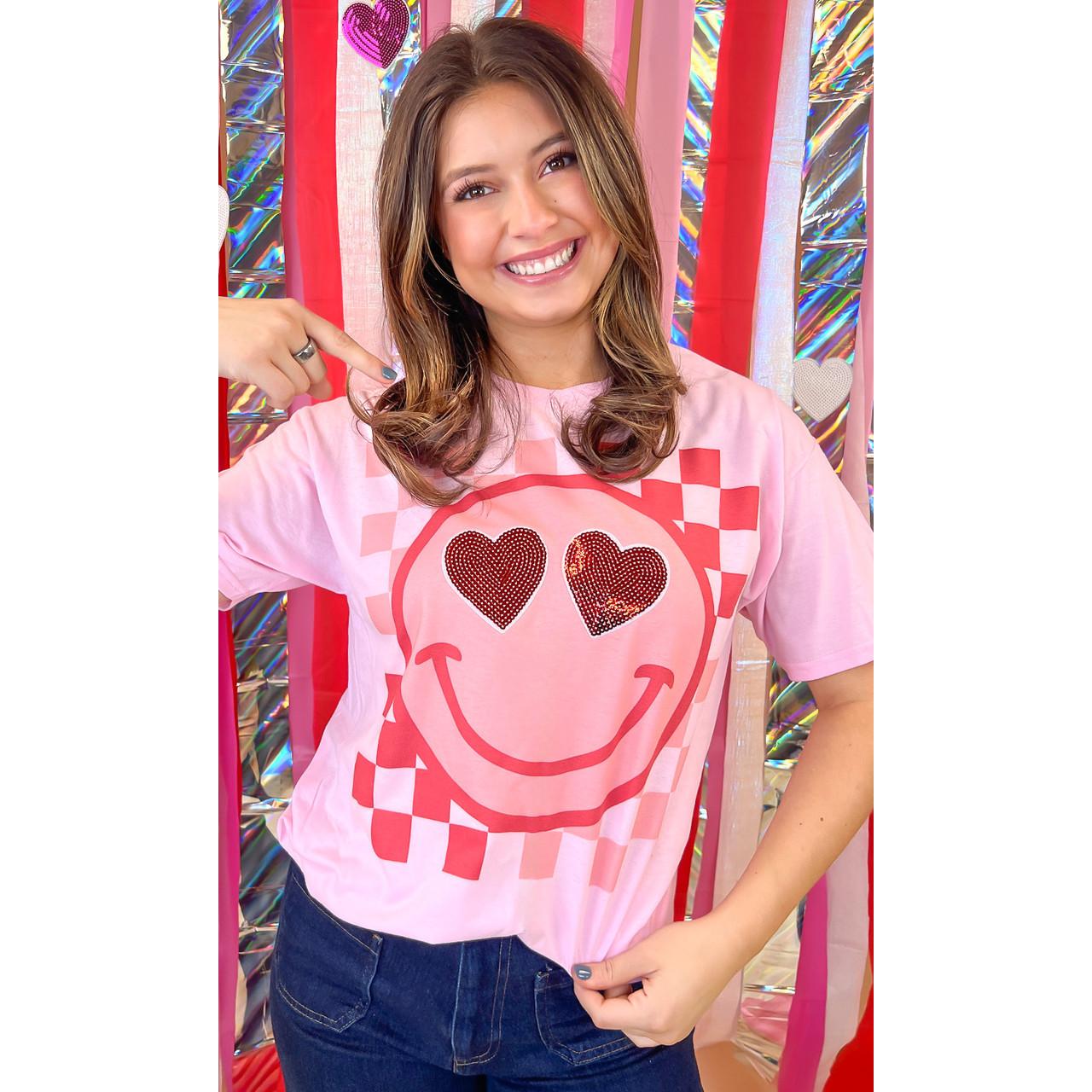Valentine Sequin Smiley Graphic T-Shirt – Brighten Your Wardrobe!