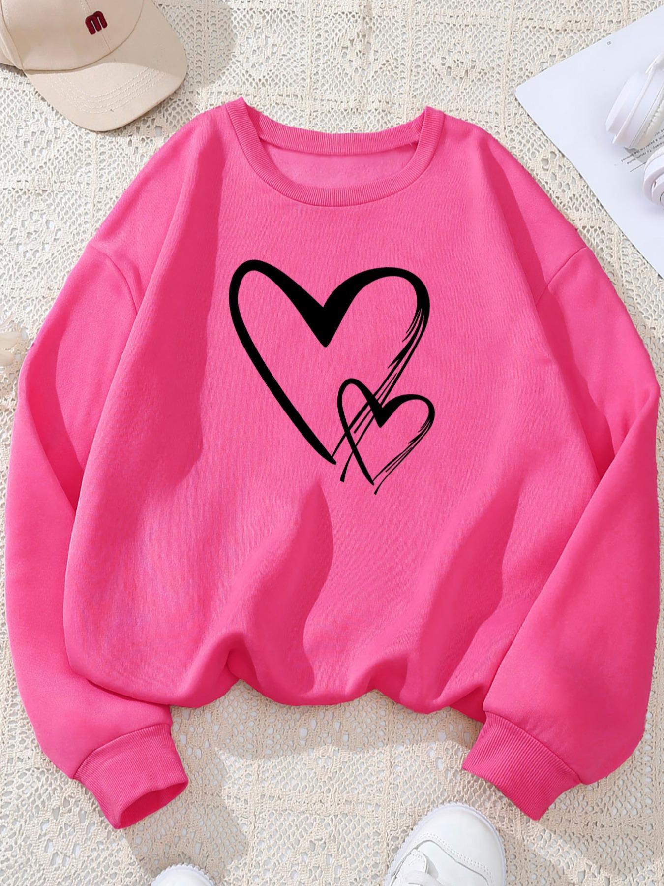 Stylish Valentine Women’s Heart Print Sweatshirt – Cozy Fashion