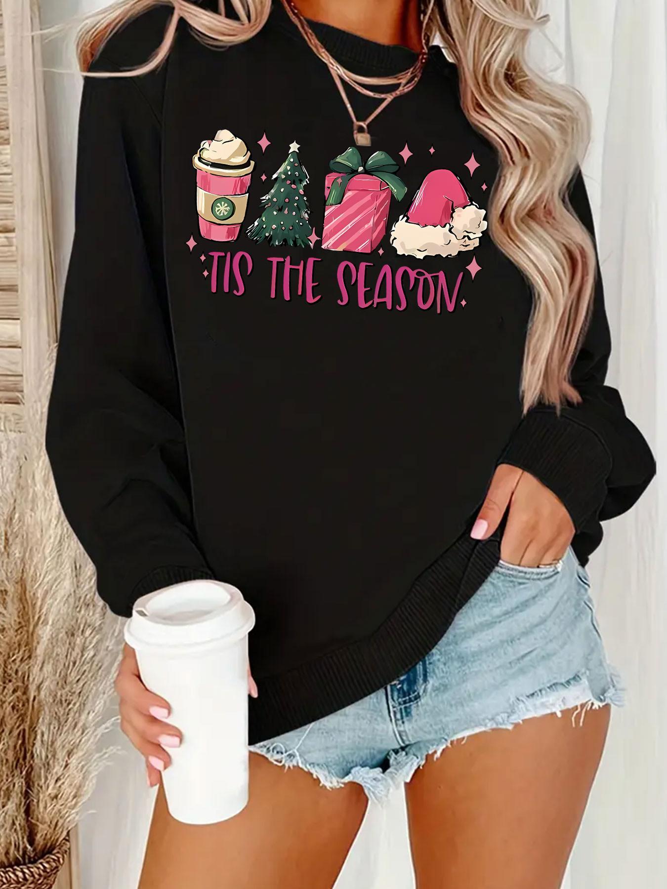Women’s Christmas Themed Letter Print Drop Shoulder Sweatshirt, Versatile Fashion Choices For Men And Women, Multiple Size Offerings, Color Spectrum, Adventure-ready Clothing, Fashion For Every Occasion