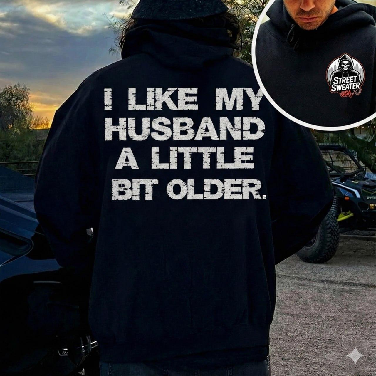 Discover the ultimate comfort with the I LIKE MY HUSBAND A LITTLE BIT OLDER Hoodie, available in various colors and sizes!