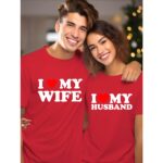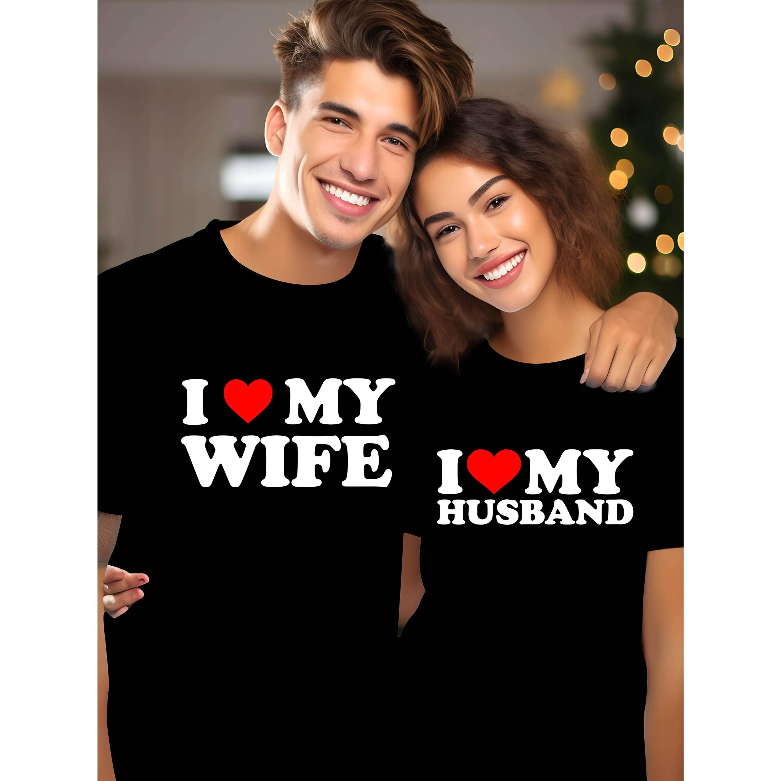 Valentine’S Day I Love My Husband And Wife Printed, Pure Couple’S Fashion Casual Sports Loose T-Shirt