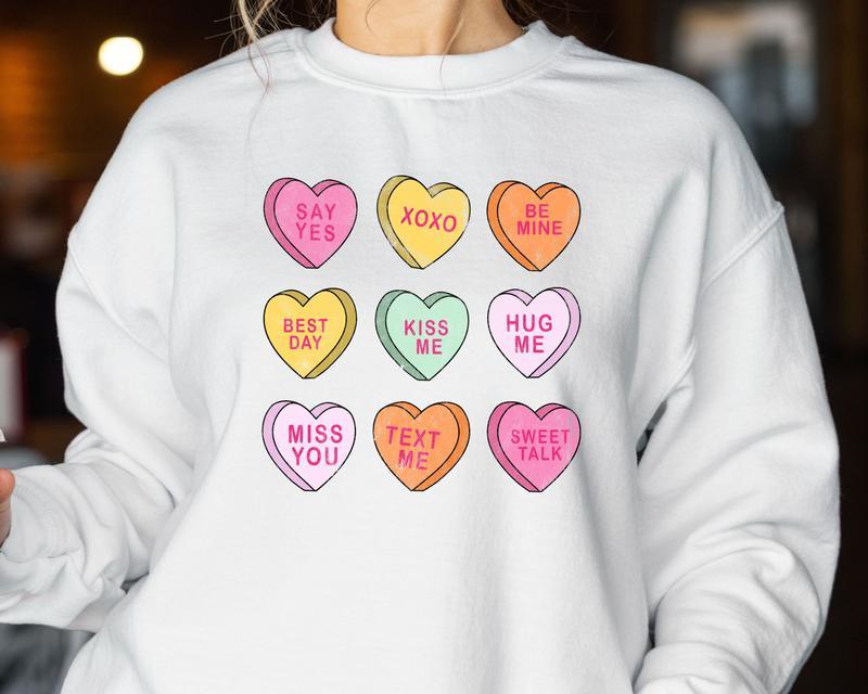 Shop our Cute Pastel Conversation Hearts Valentine Sweatshirt for ultimate comfort. Perfect for Valentine’s Day and casual wear!