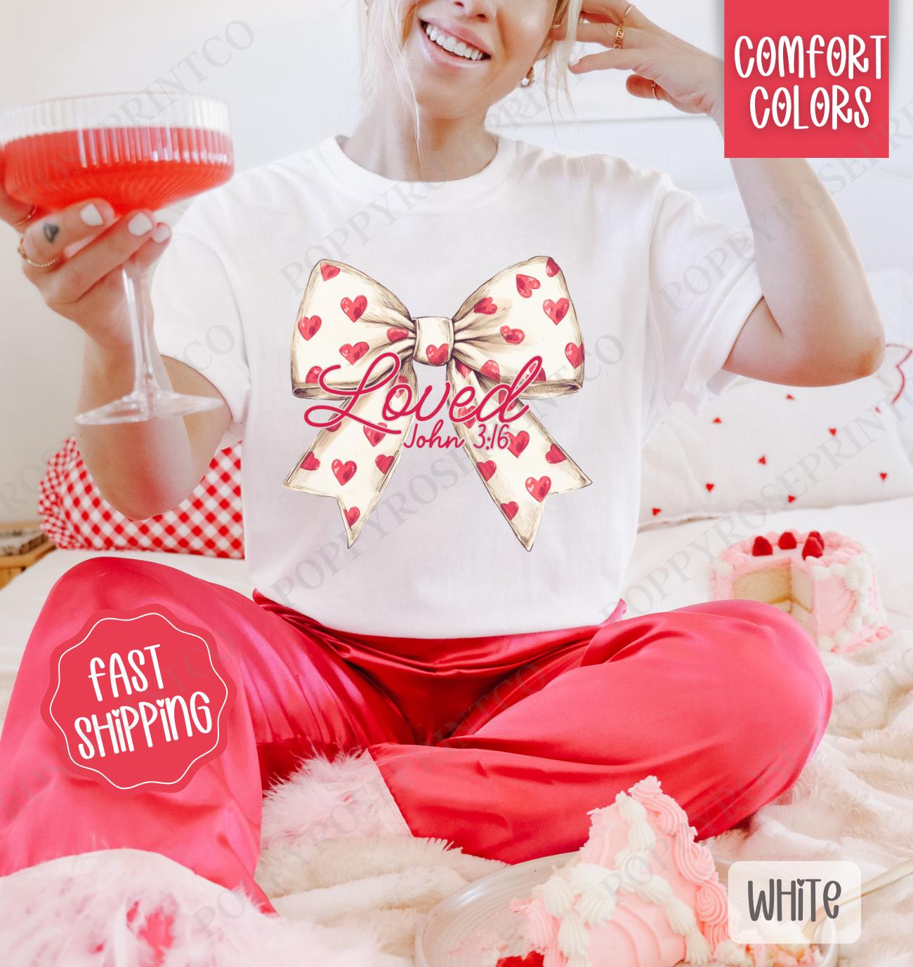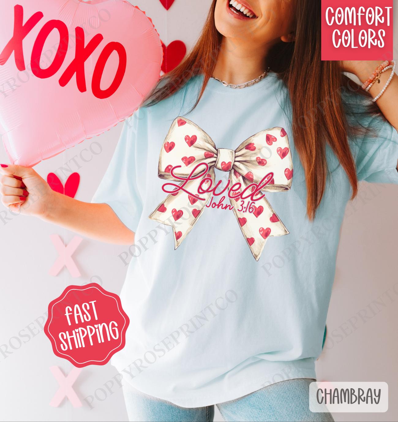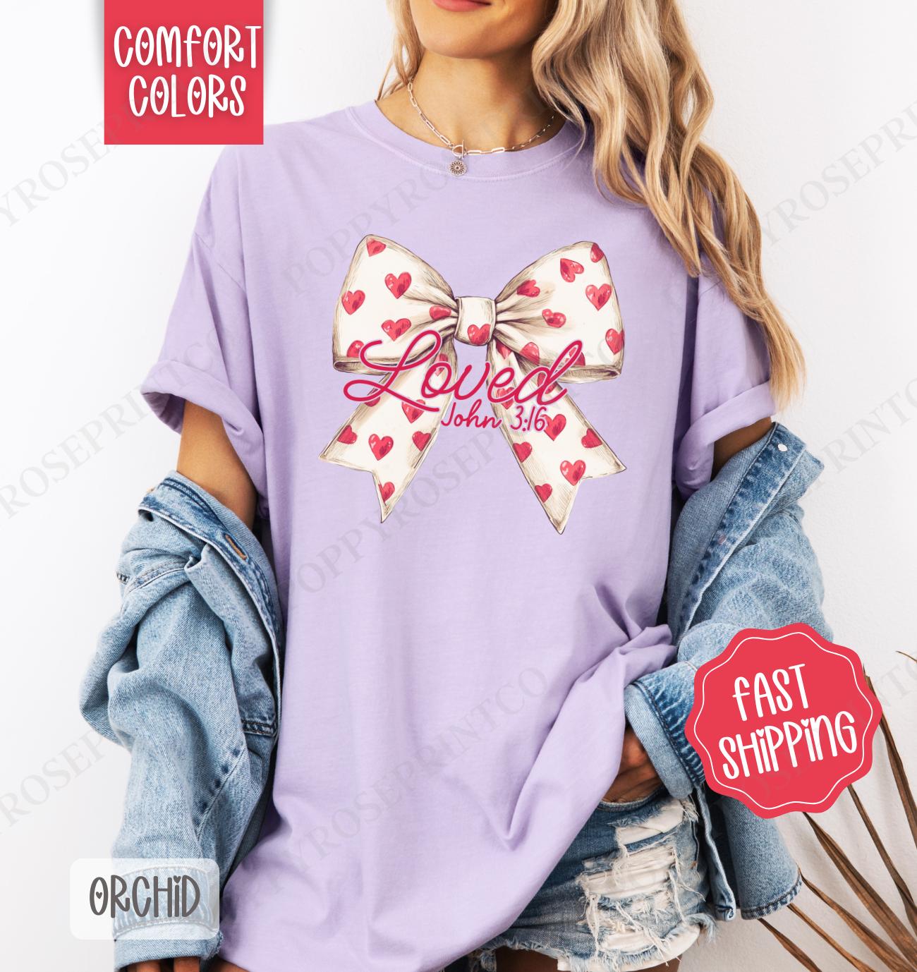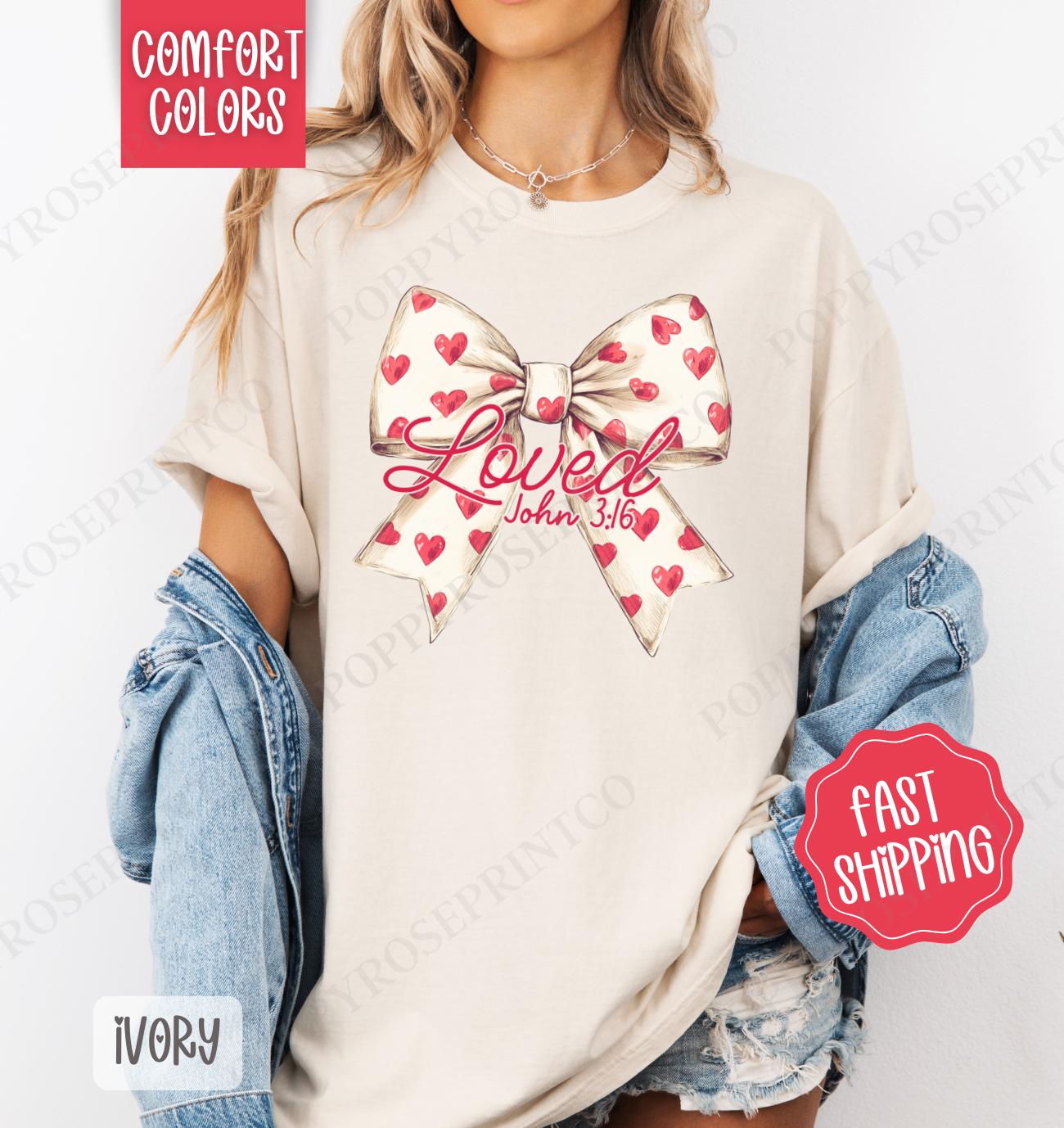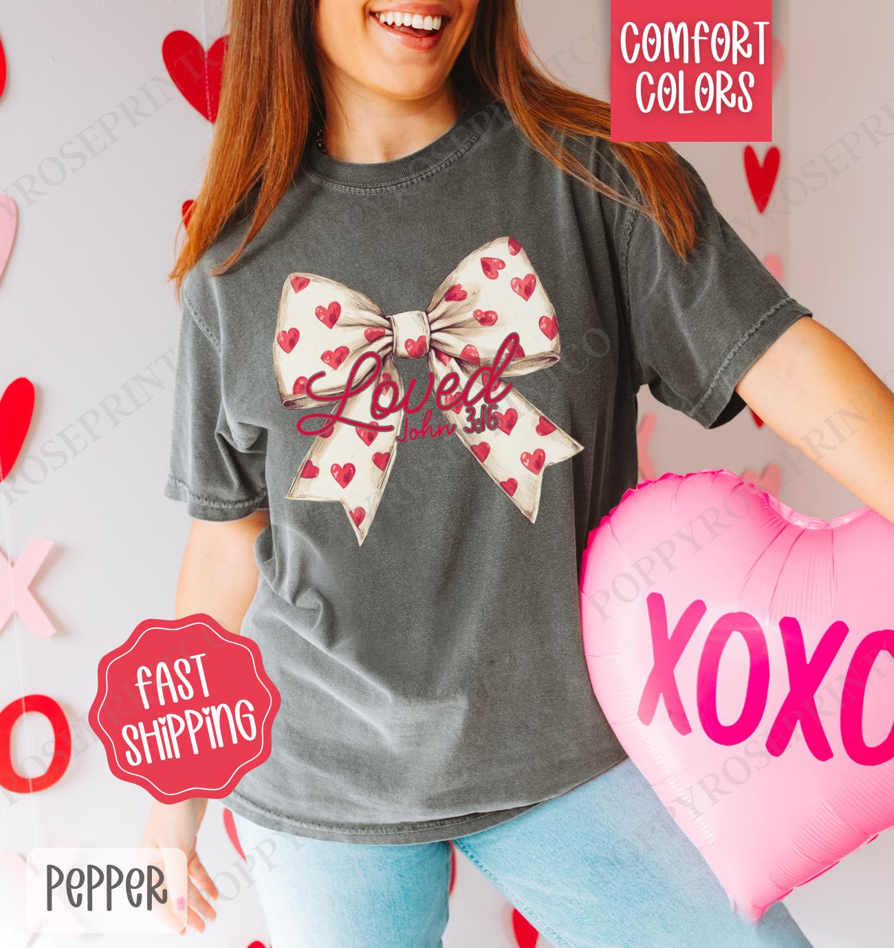Shop our Loved Bow Shirt, the ultimate Valentine’s Day Women’s Tee for comfort and style. Available in various colors and sizes!