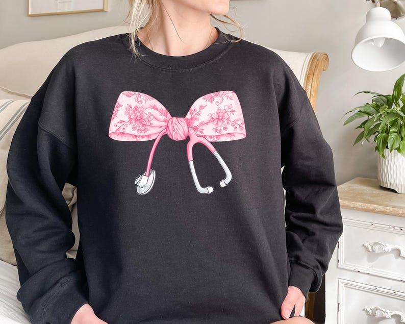 Stylish Pink Bow Nurse Sweatshirt – Perfect Gift for Nurses!
