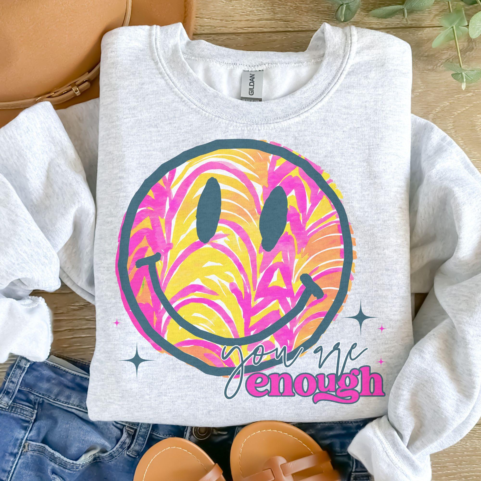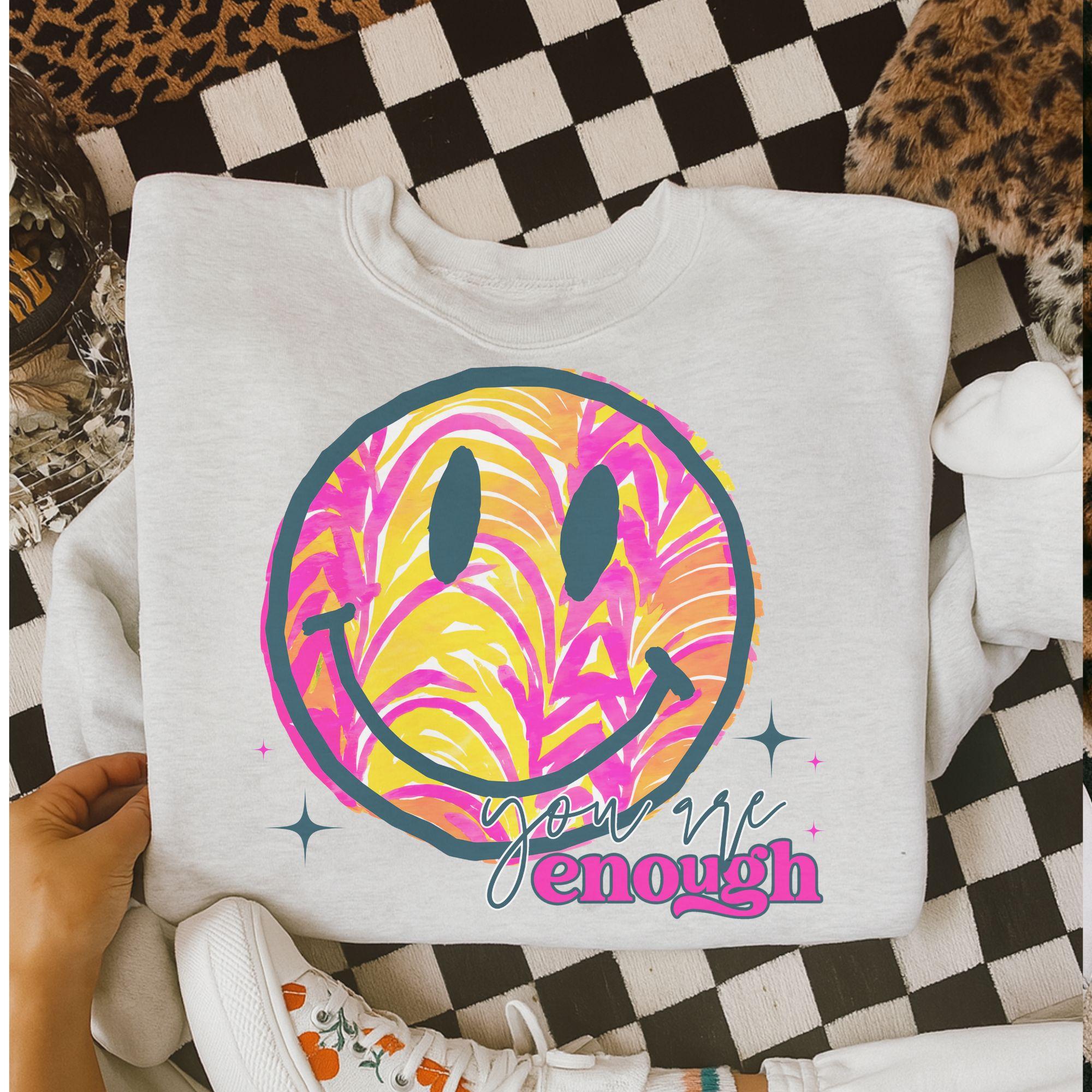 Shop the You Are Enough Smiley Valentine Sweatshirt for stylish comfort! Perfect for all occasions. Order yours today!
