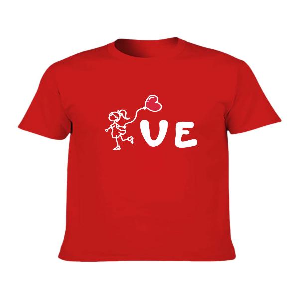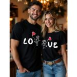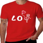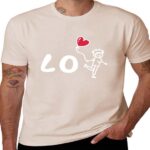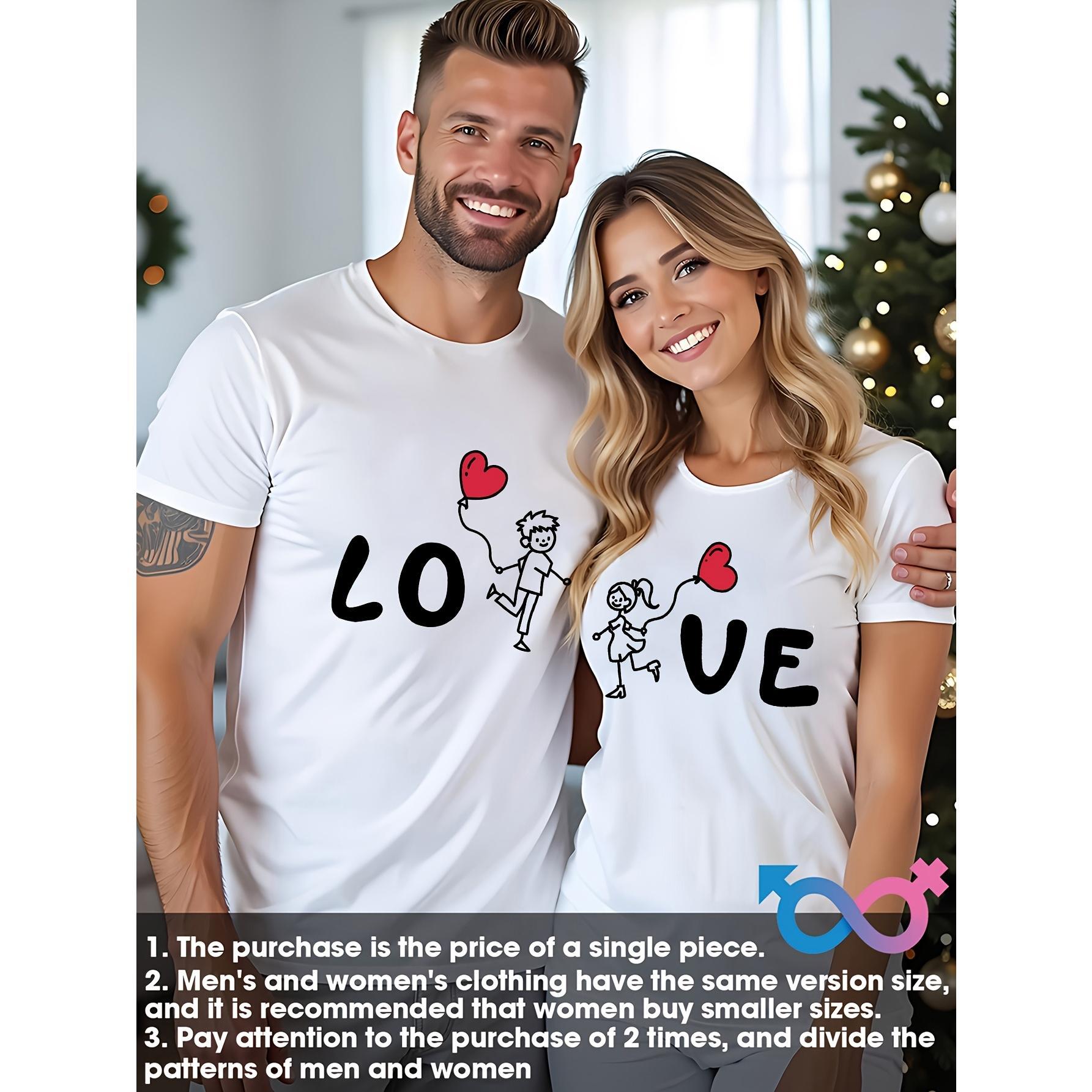 Casual Short-Sleeve T-Shirt with a Love-Themed Cartoon Character Design for Couples on Valentine’S Day.