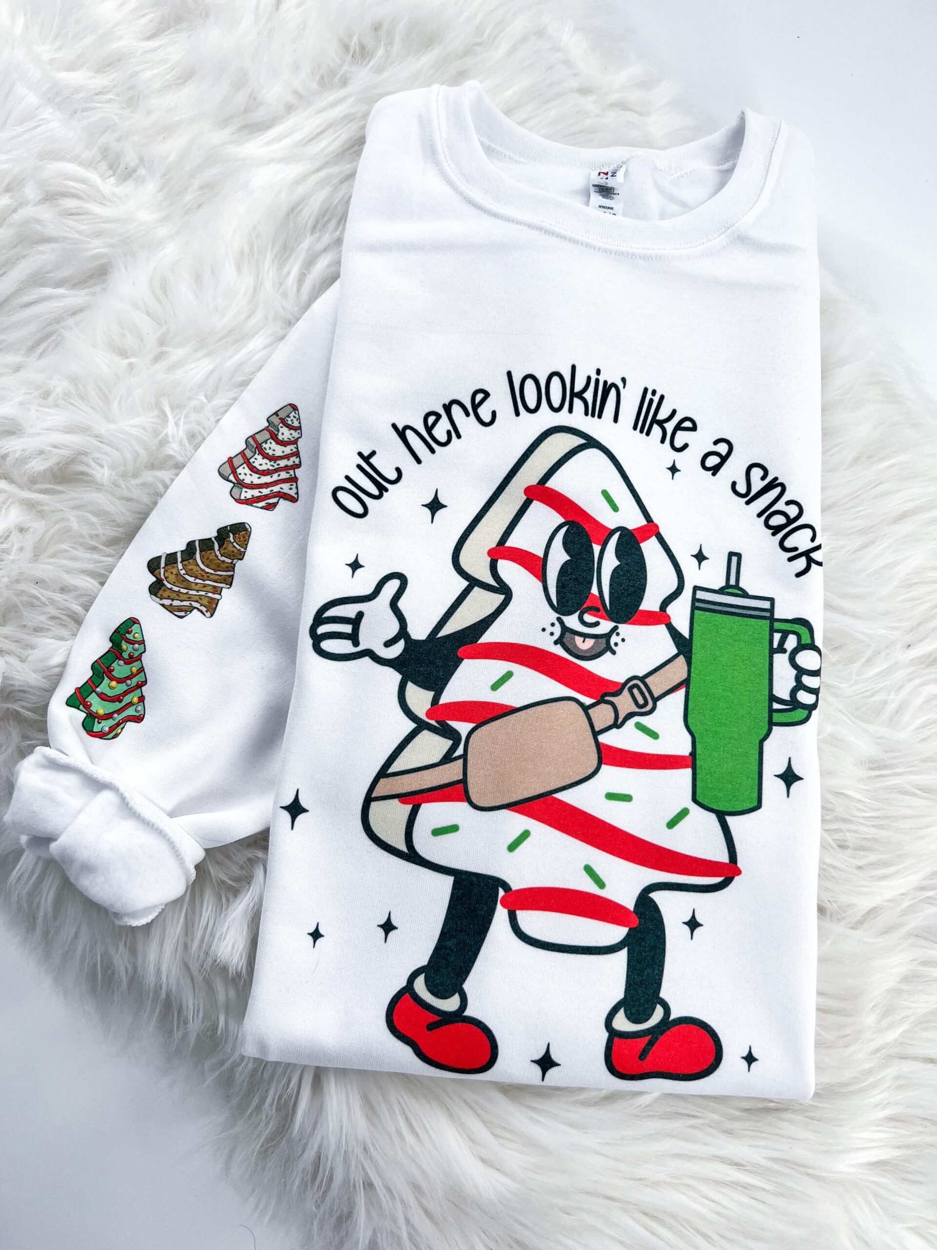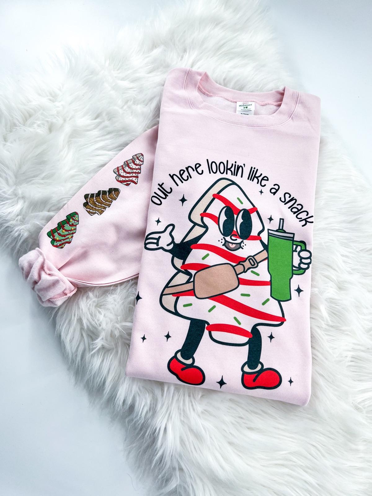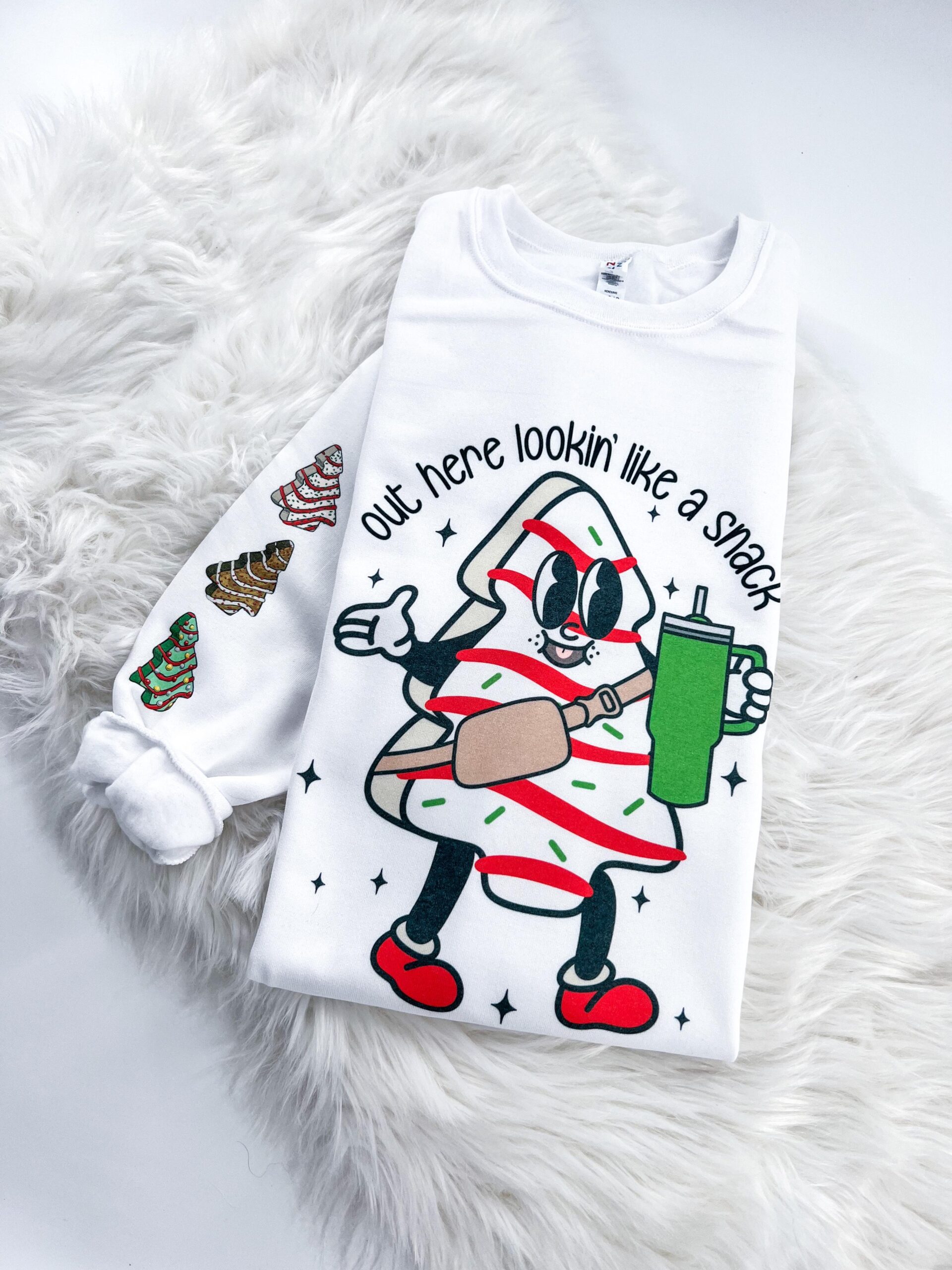 Out Here Looking Like A Snack Retro Christmas Tree Cake Sweatshirt – Stylish Comfort