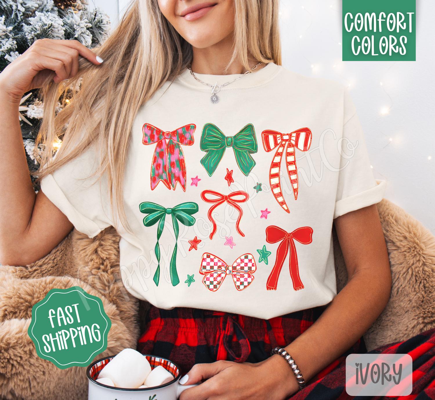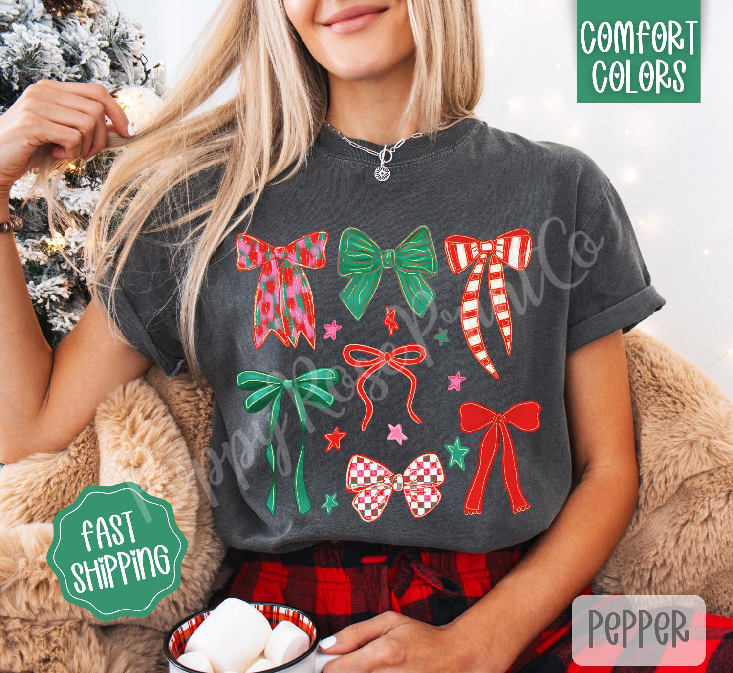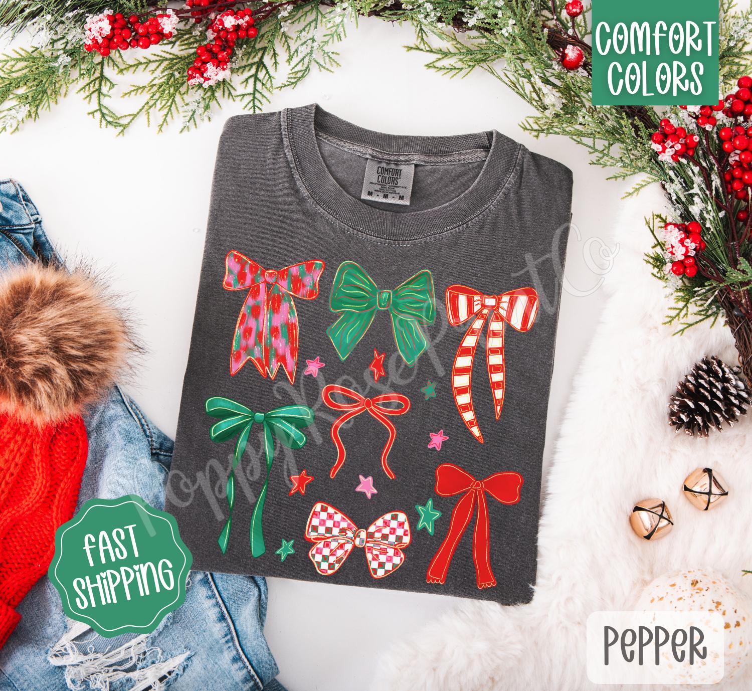 Christmas Bows Comfort Colors, Trendy Women’s Holiday Tshirt