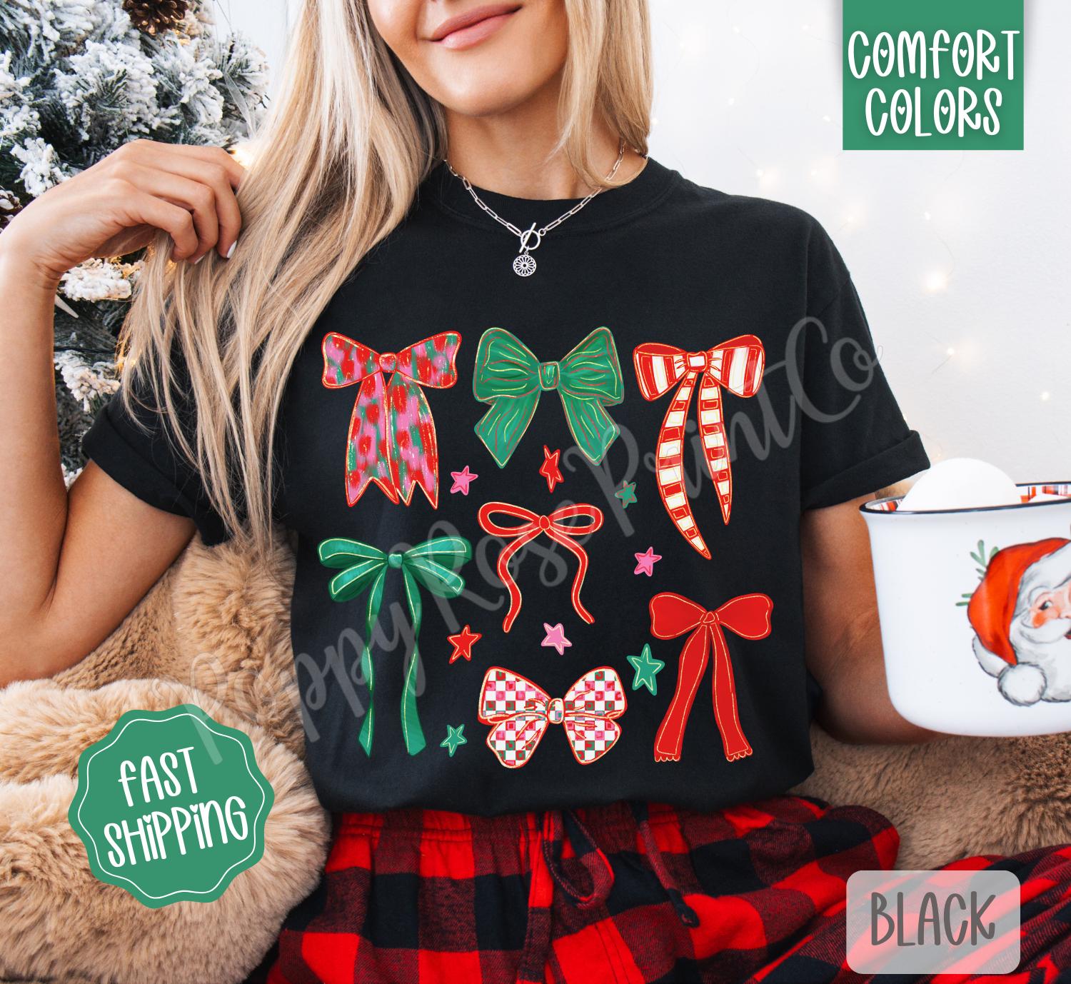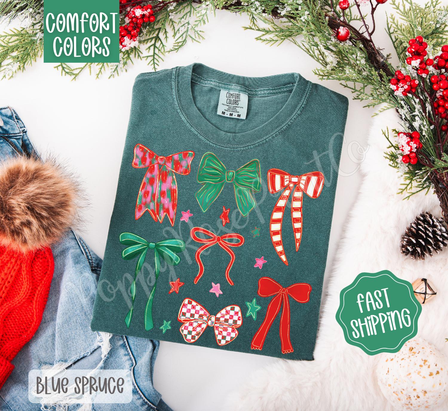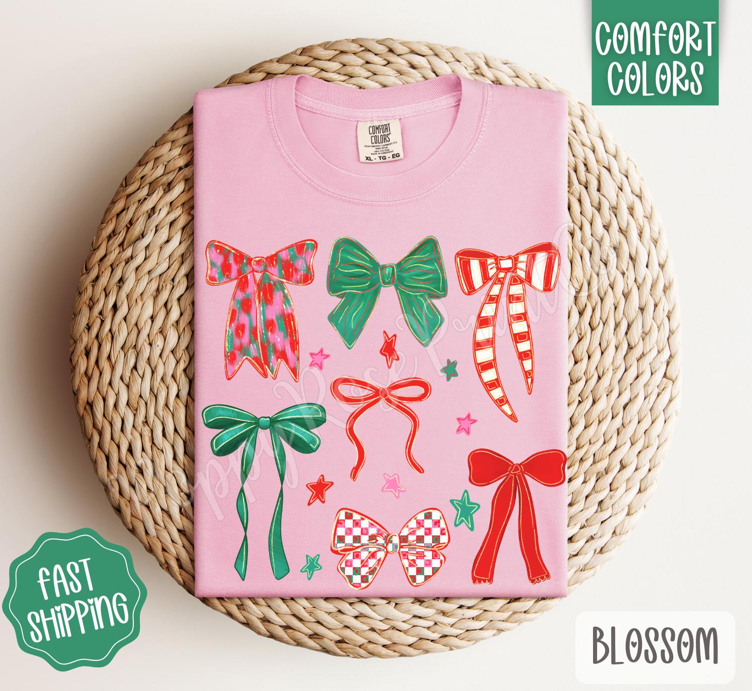 Christmas Bows Comfort Colors, Trendy Women’s Holiday Tshirt