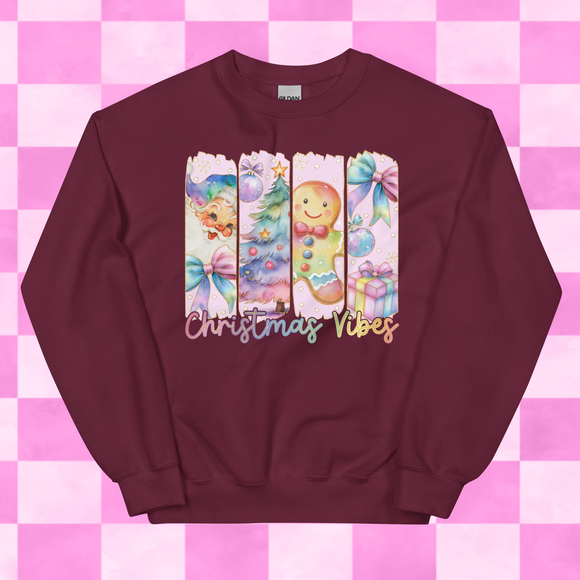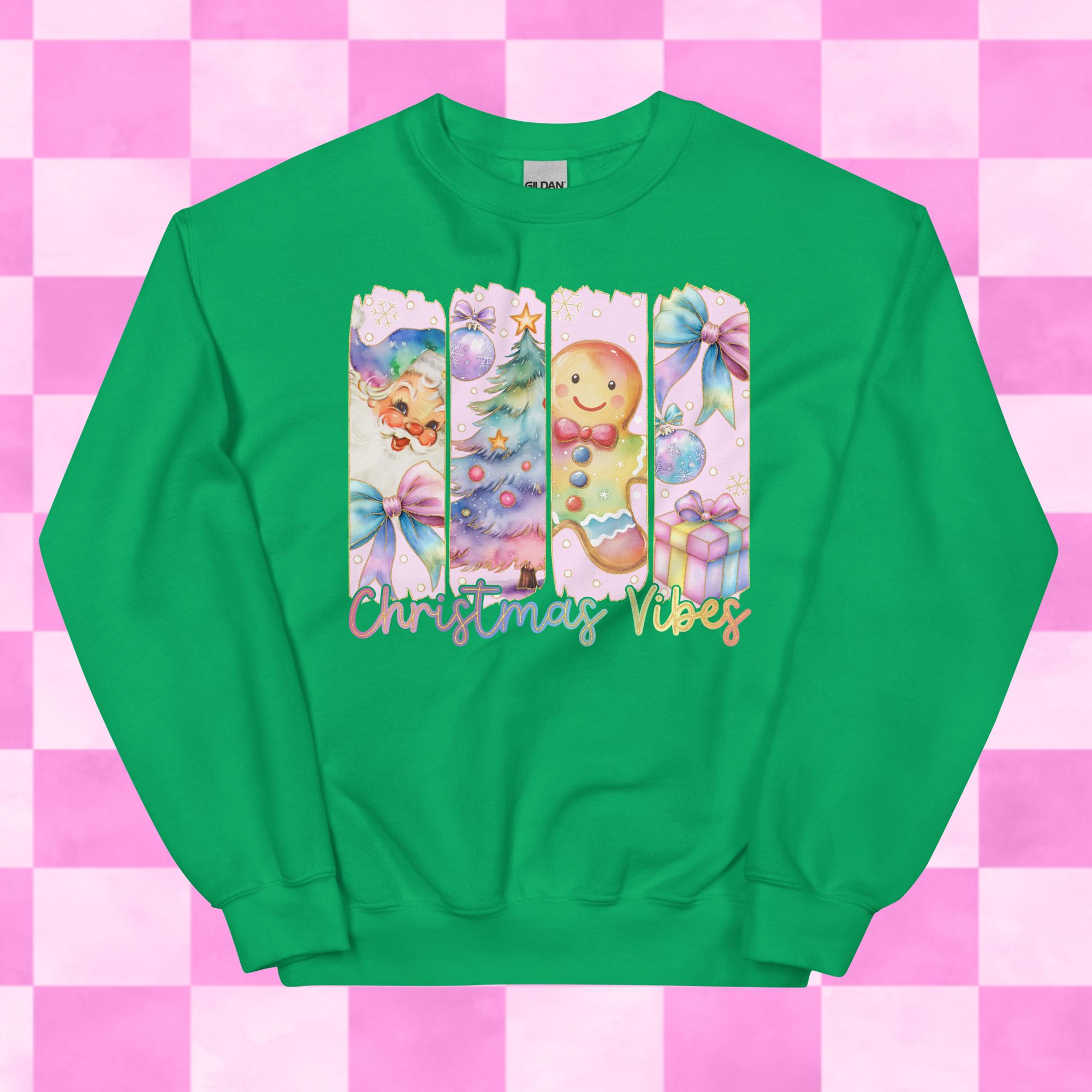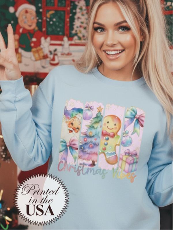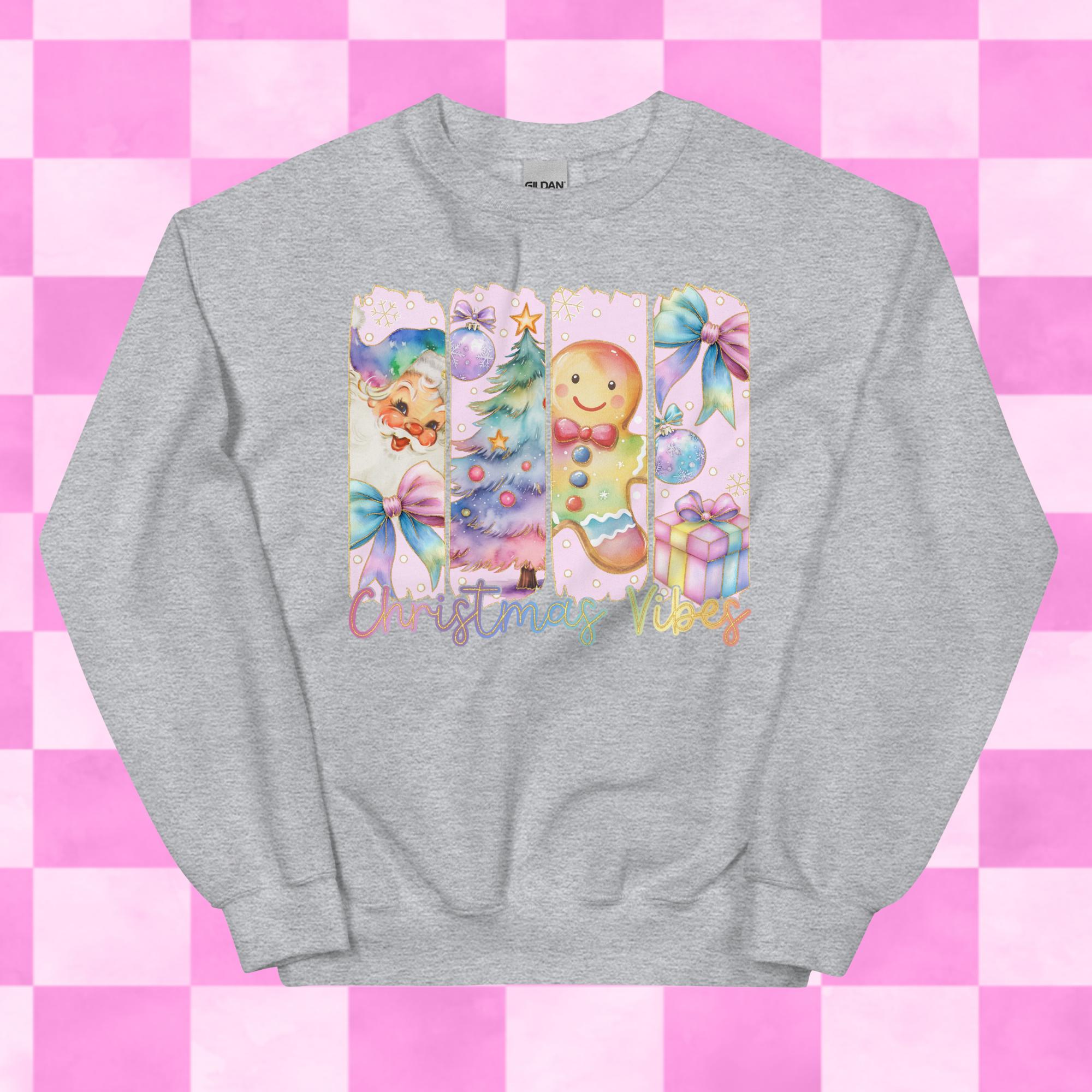 Pastel Christmas Vibes Crewneck Sweatshirts Printed