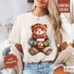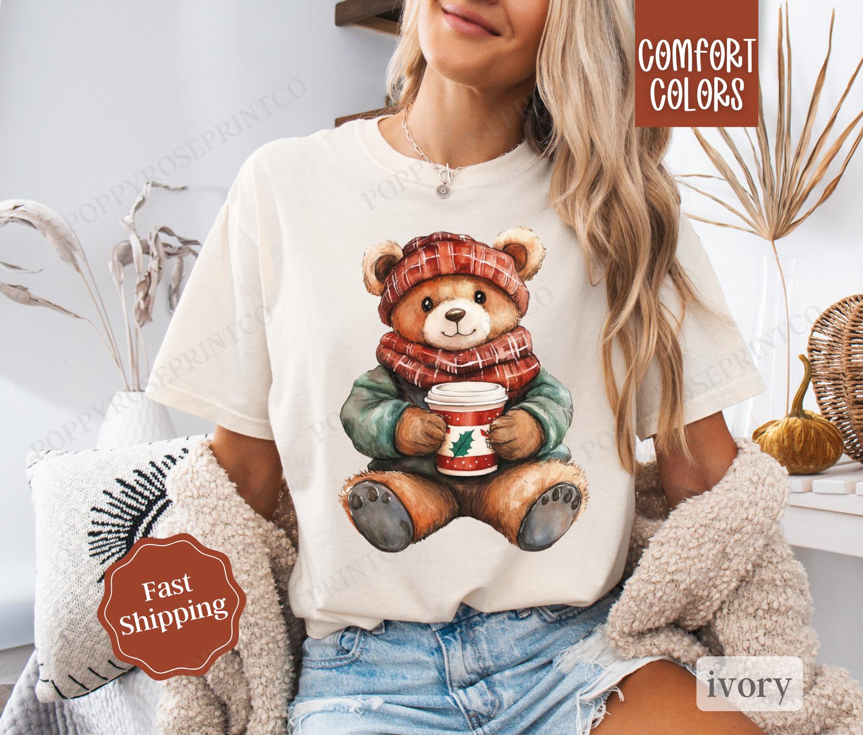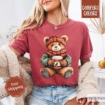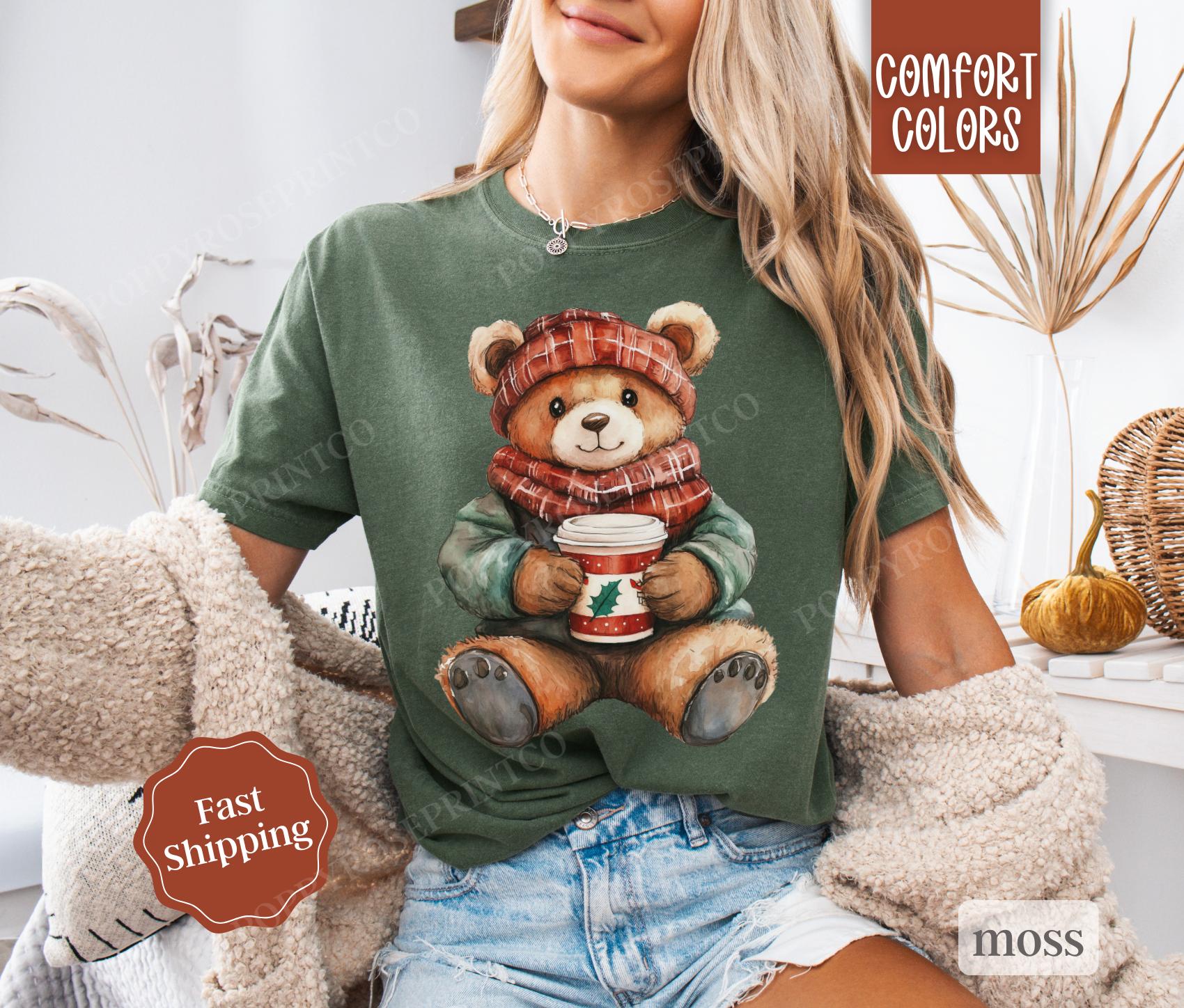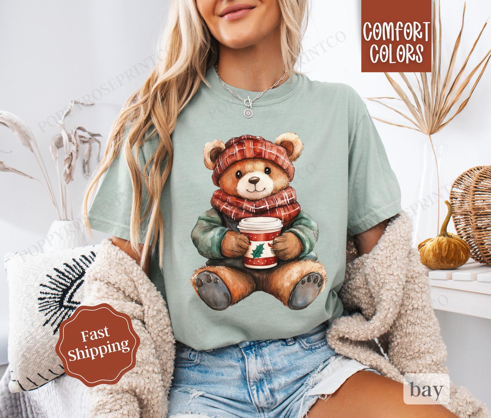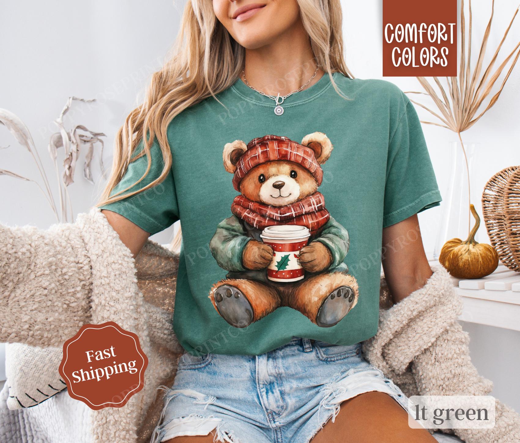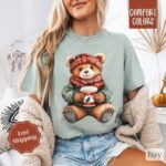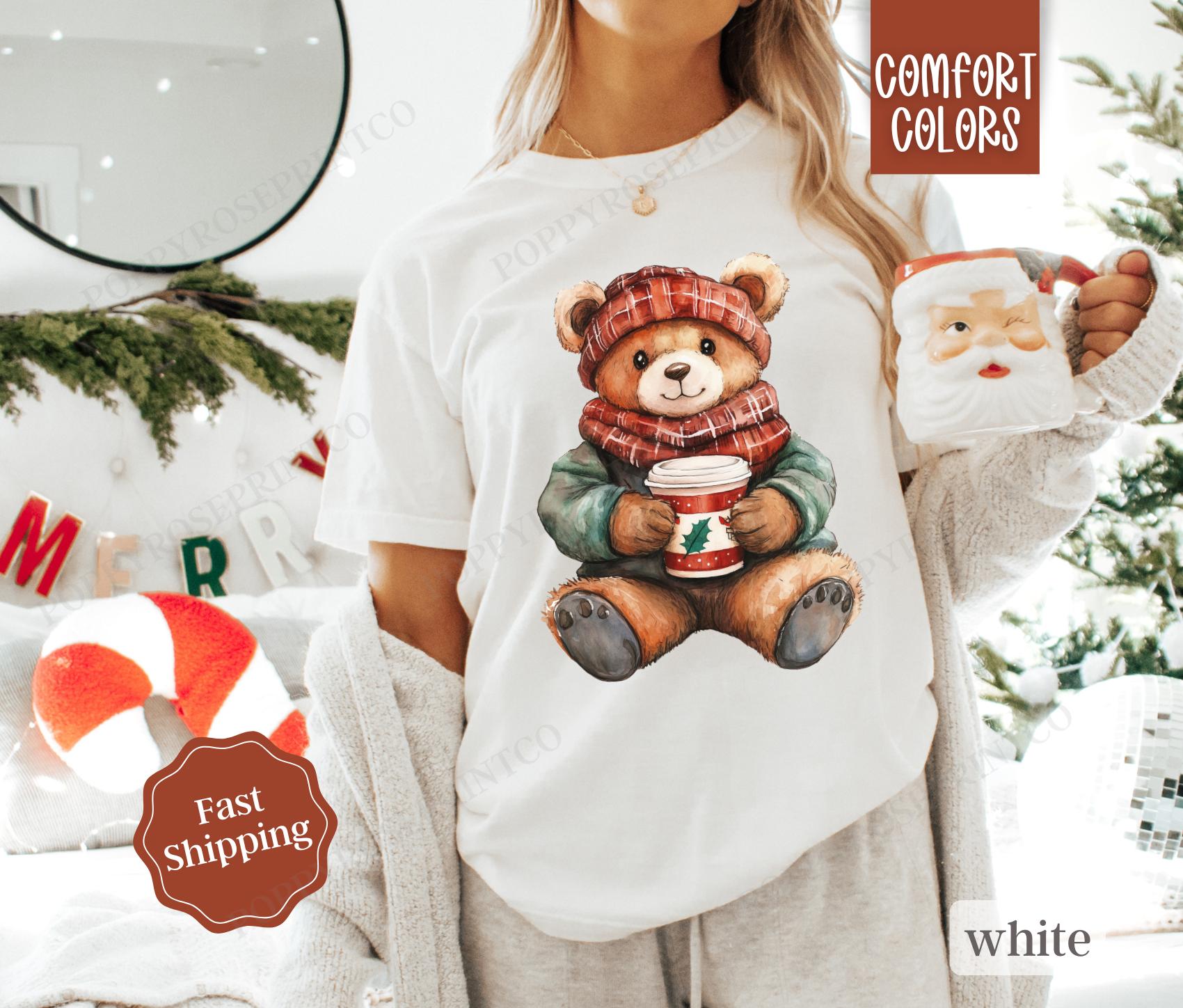 Holiday Bear Shirt Comfort Colors, Cute Christmas Tee