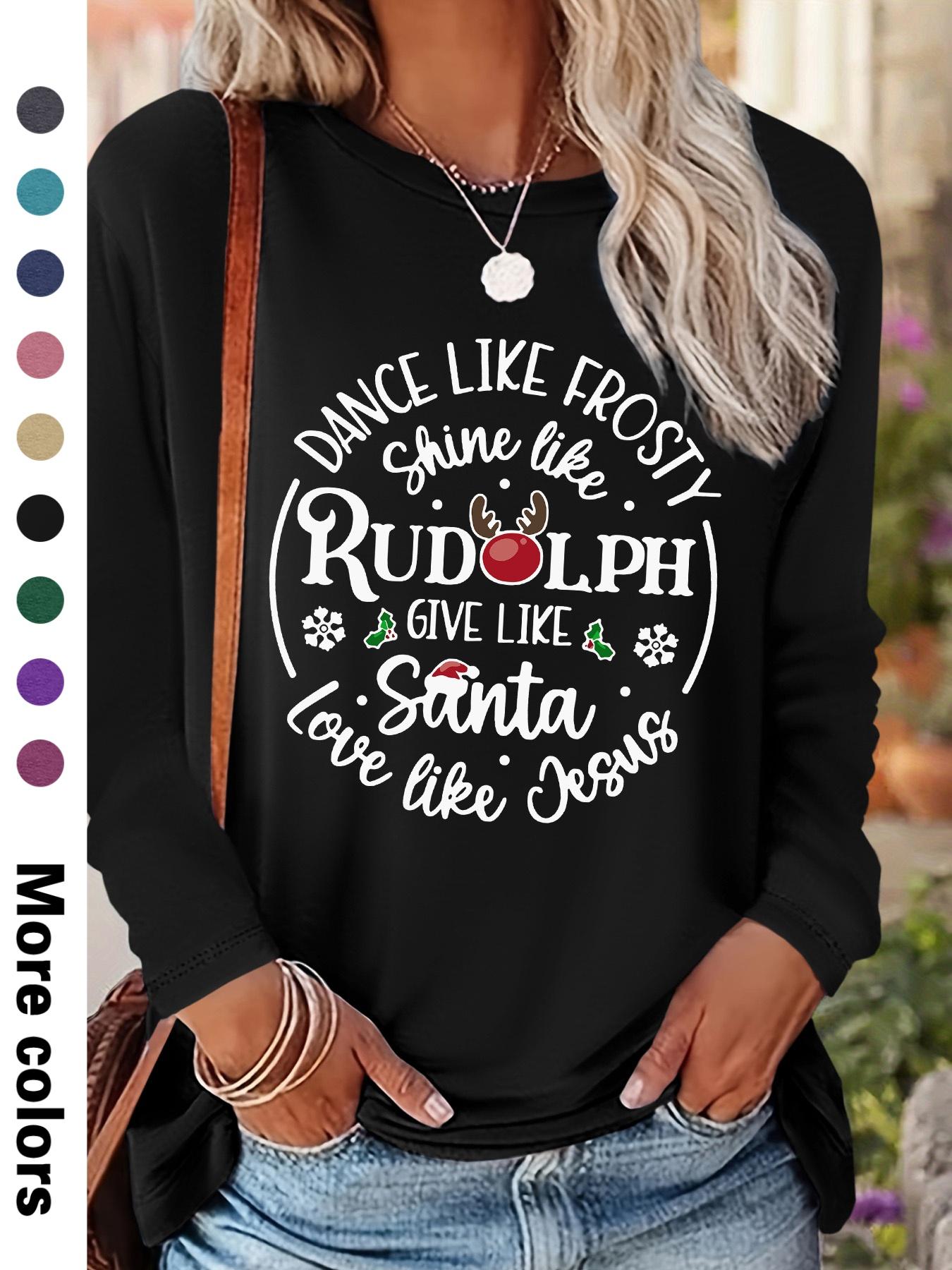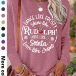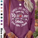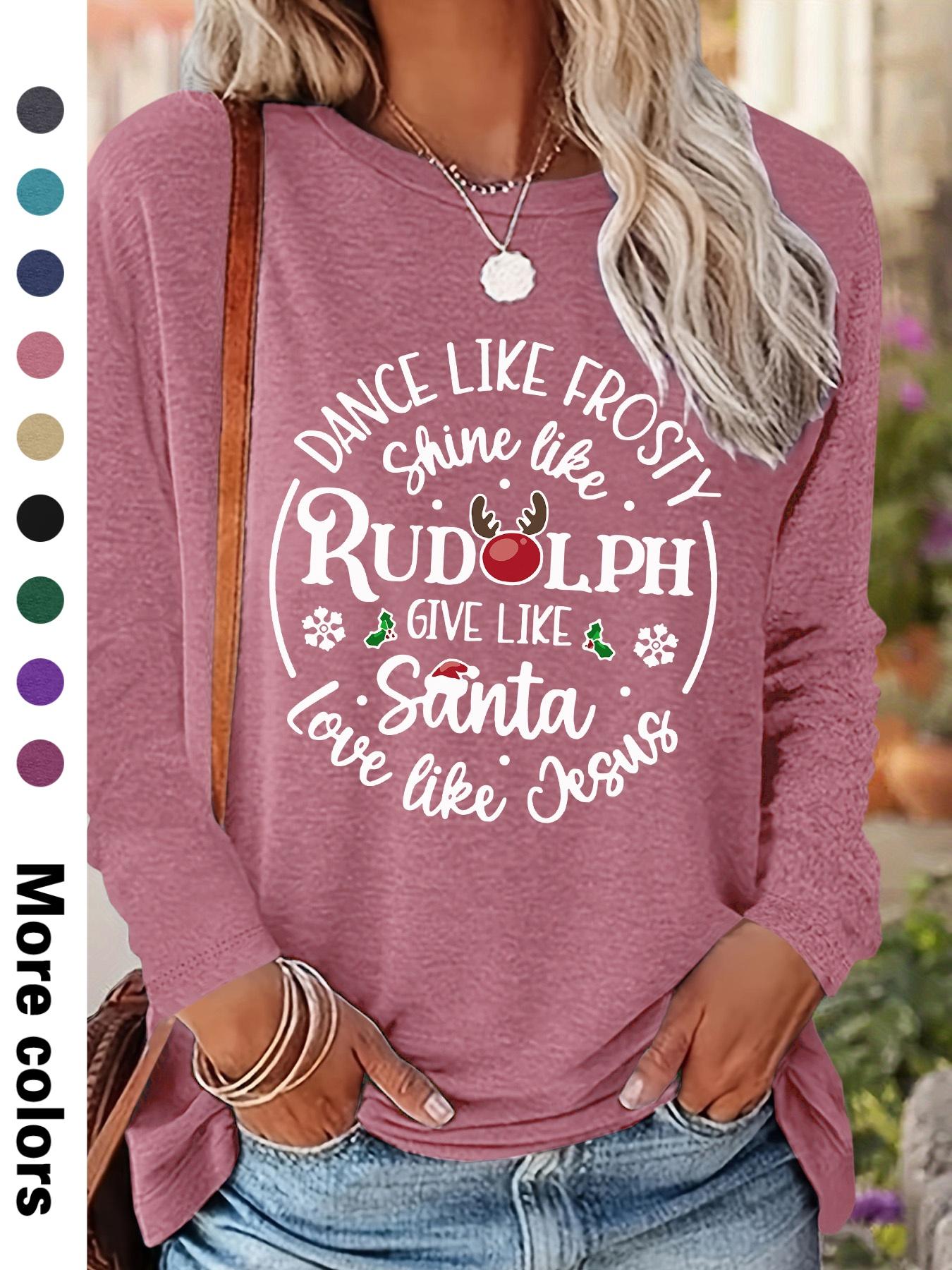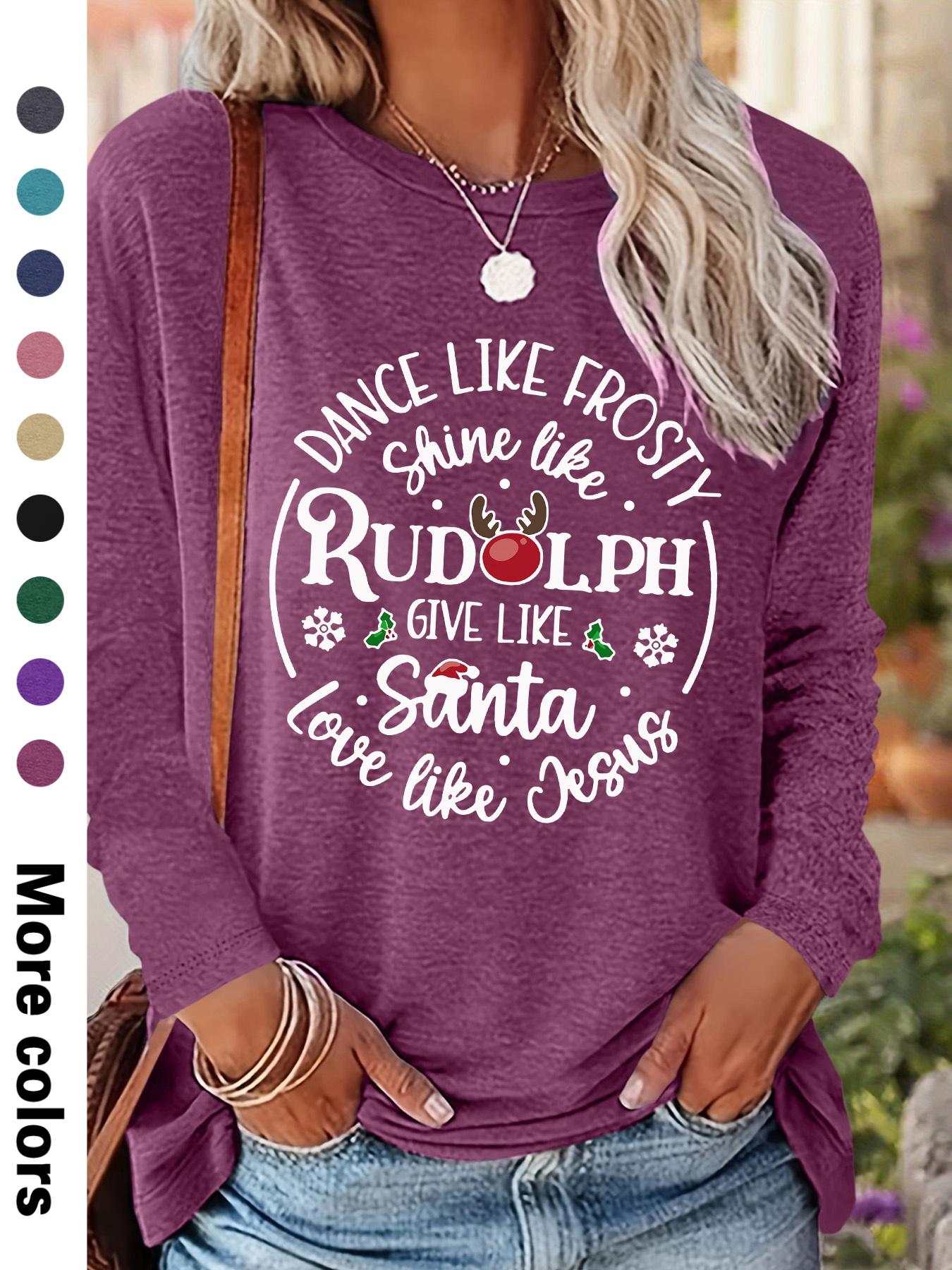 Women’s Christmas Letter Print Drop Shoulder Casual Long Sleeve Round Neck Pullover For Daily Wear