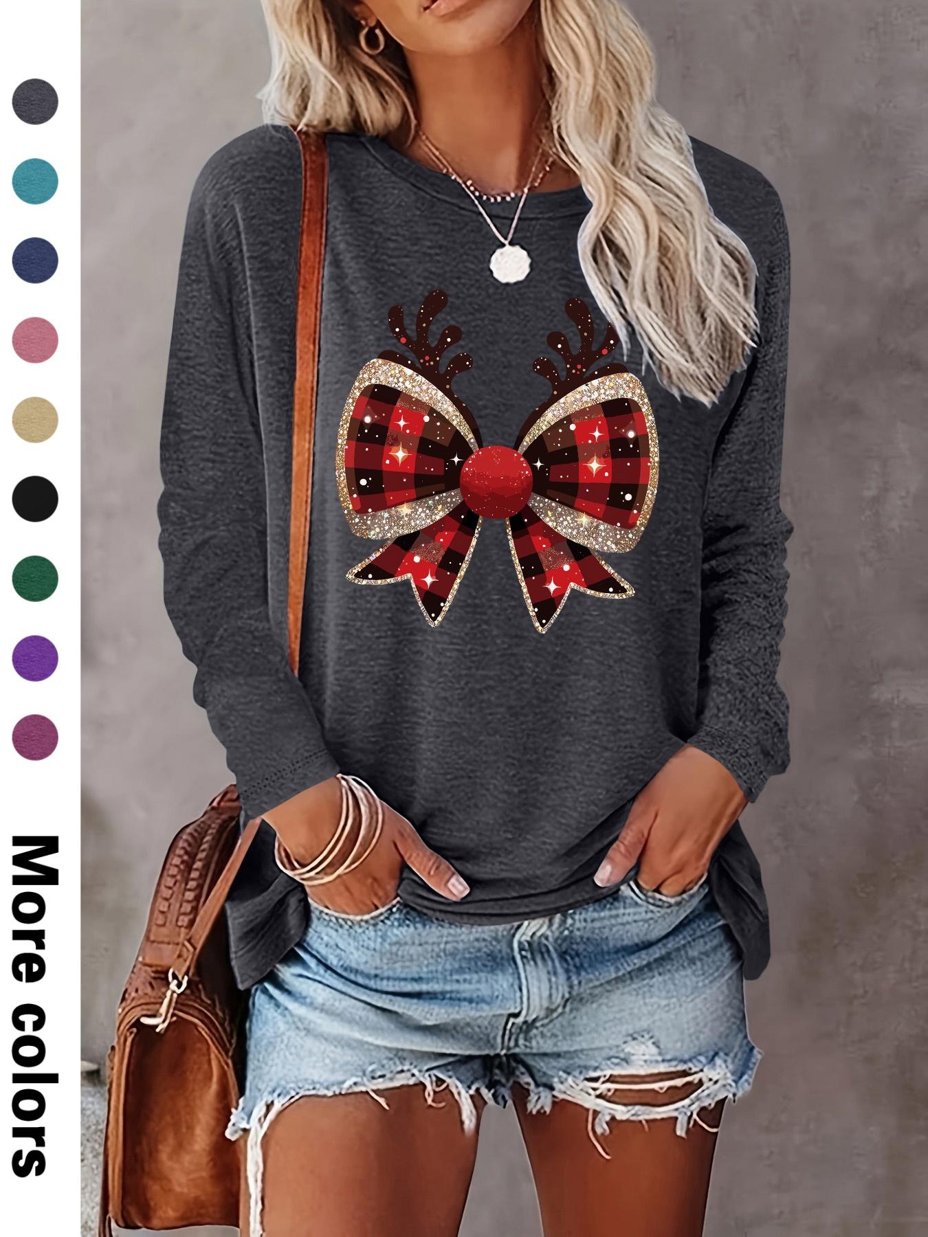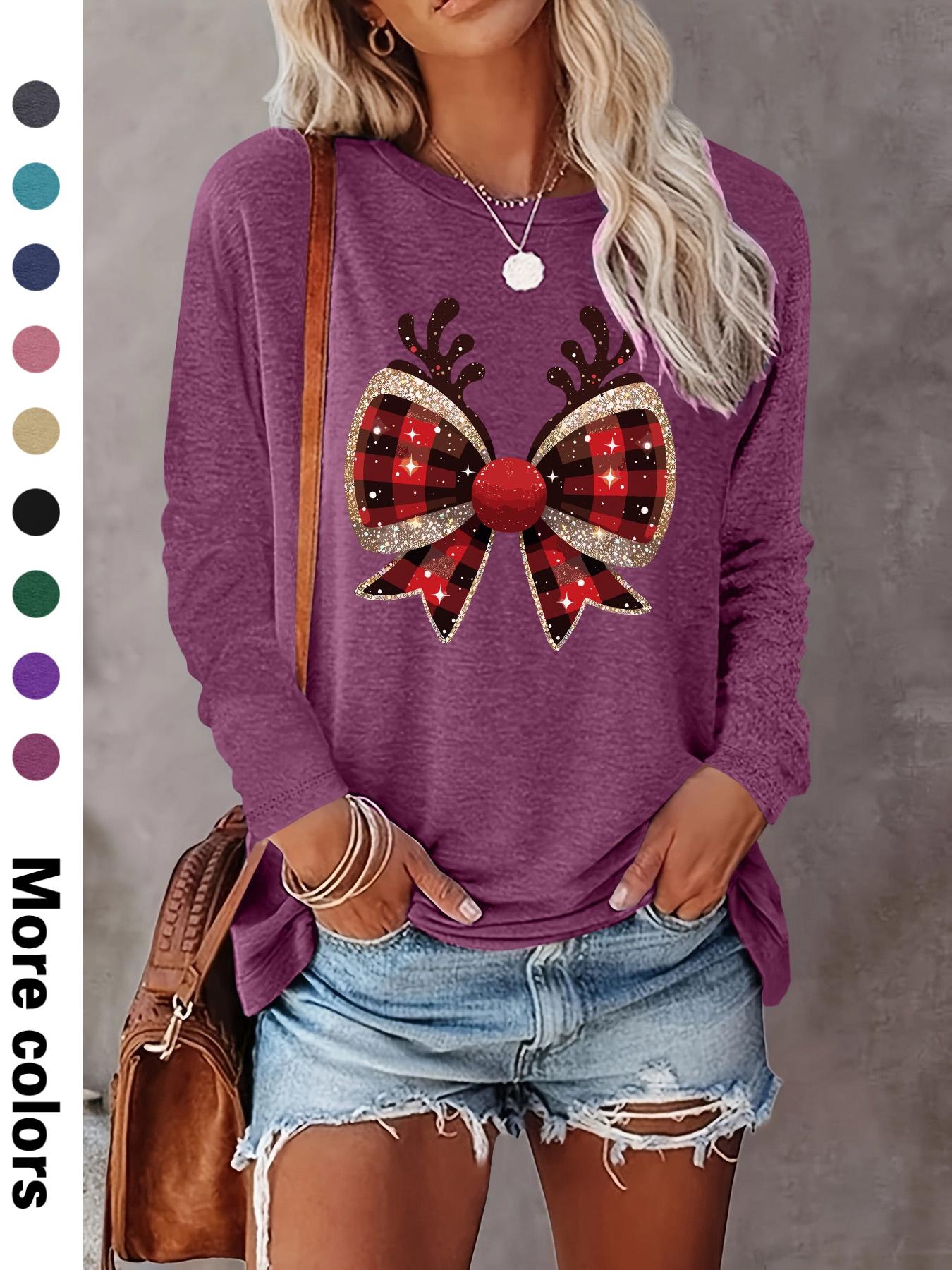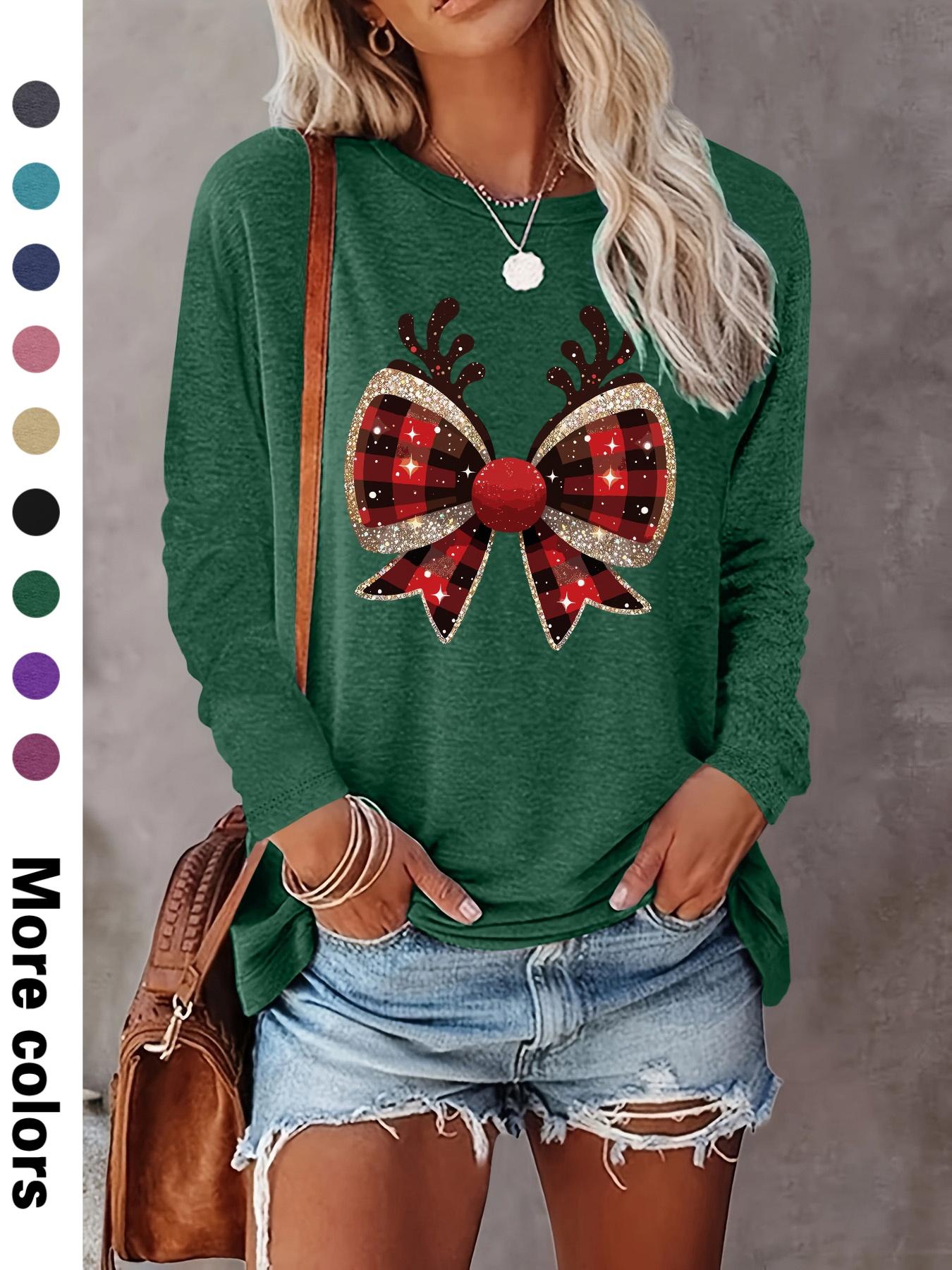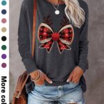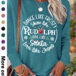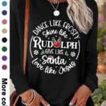 Women’s Christmas Letter Print Drop Shoulder Casual Long Sleeve Round Neck Pullover For Daily Wear